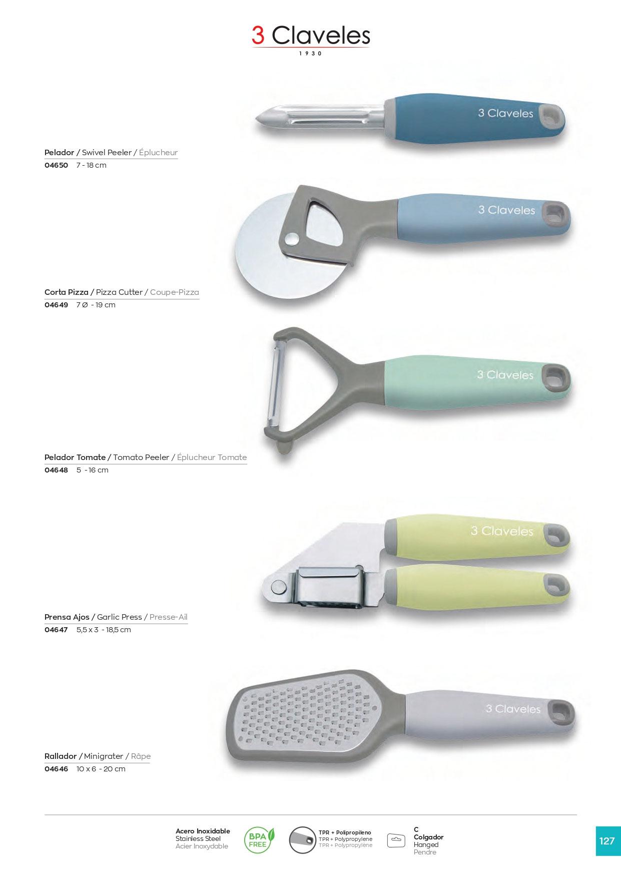 Ralador em aço inoxidável com cabo em TPR e polipropileno, 3 Clav...