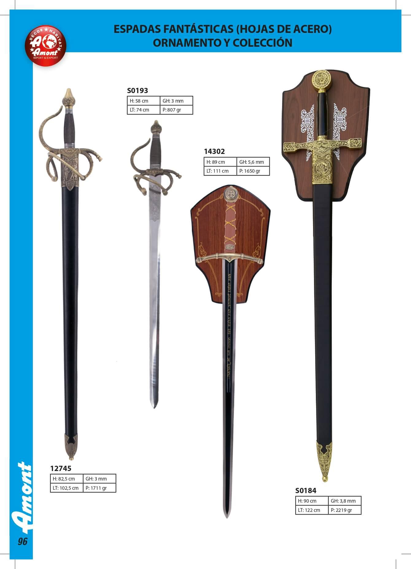 Espadas fantásticas com chapas de aço, ornamentais e cobrança.