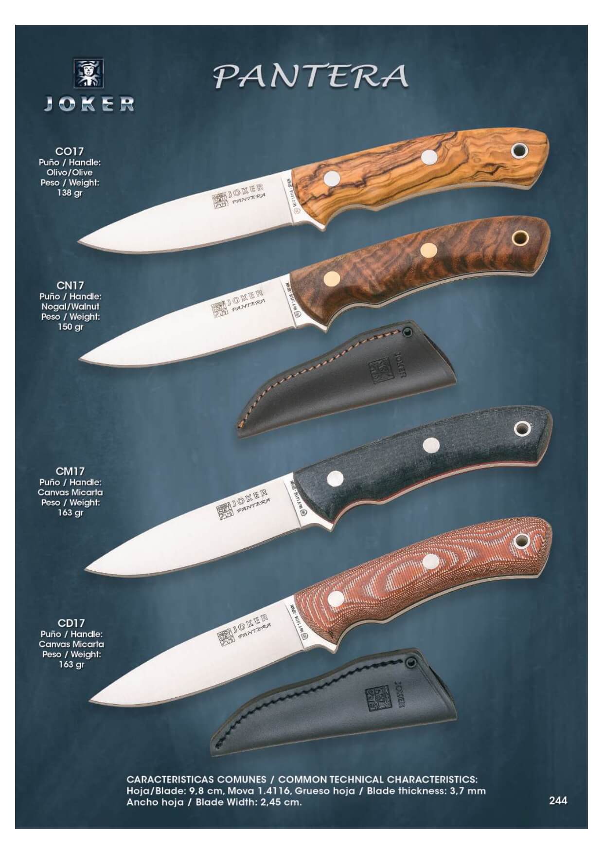Facas sólidas com lâmina de aço molibdênio vanádio medindo 9,8 cm de comprimento e 3,7 mm de espessura.