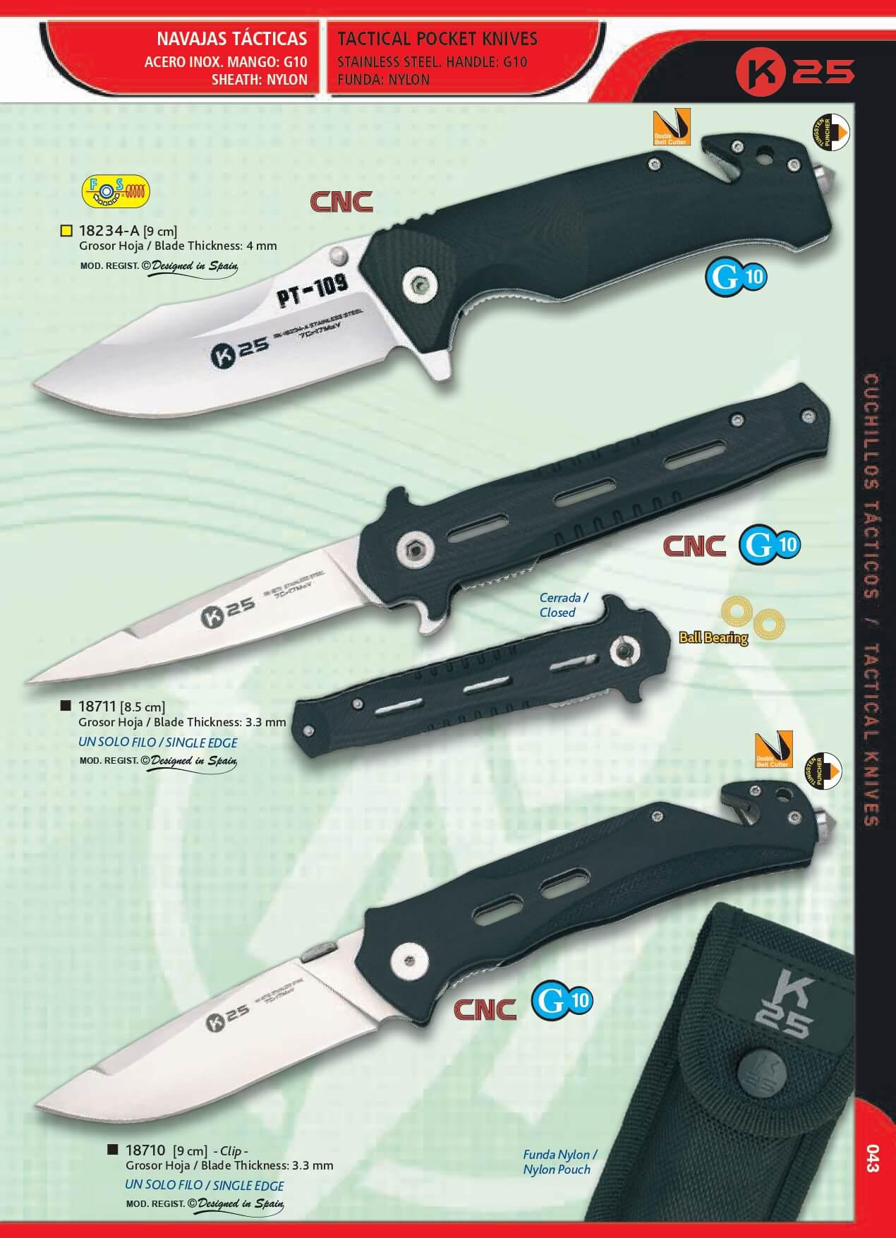 Faca tática K25, lâmina de um gume de 8,50 cm e cabo G-10 preto