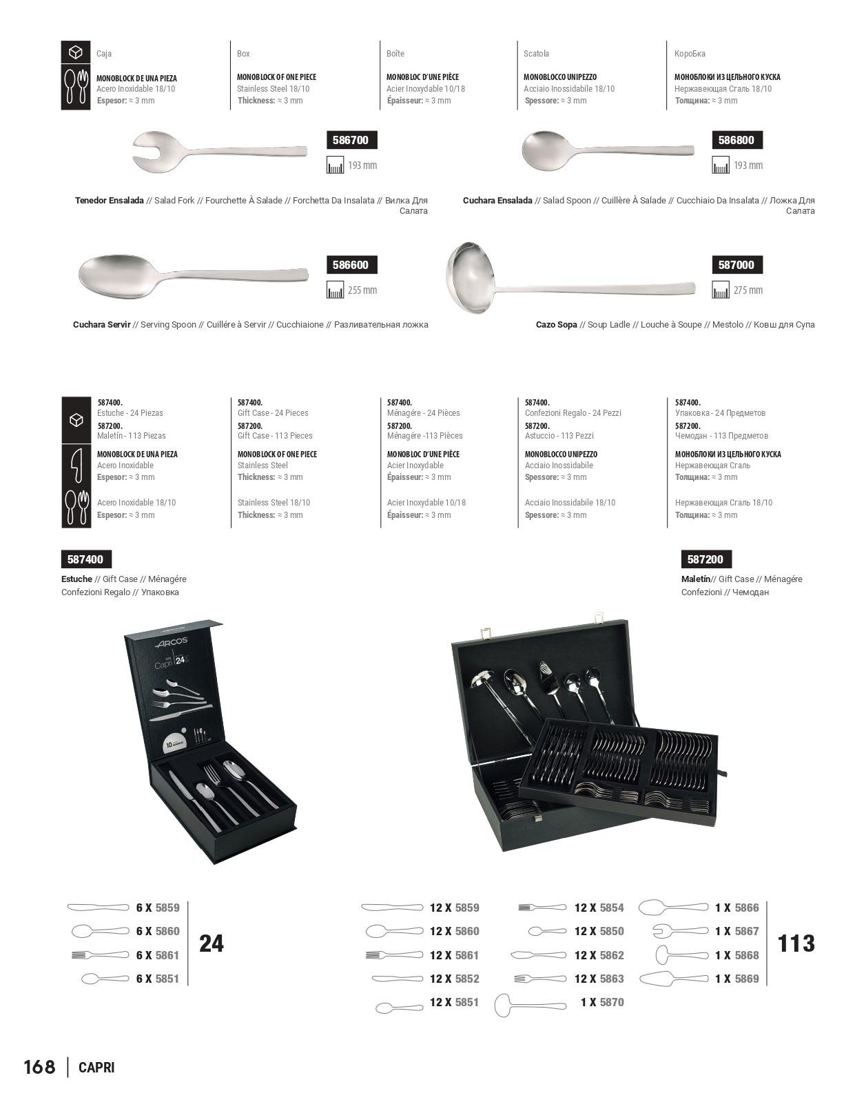 Talheres da série CAPRI. Com lâmina de aço inoxidável 18/10 e alça.