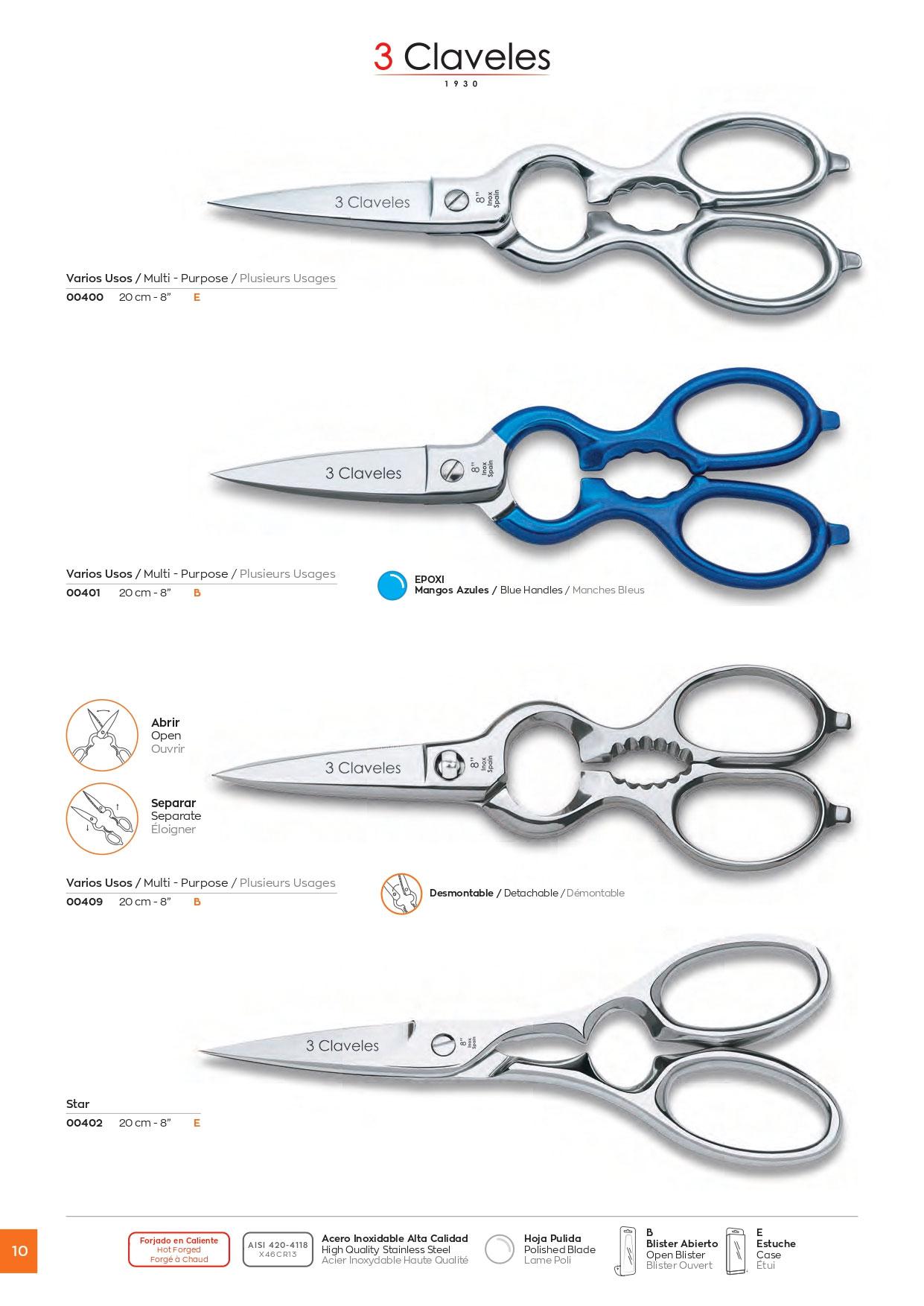 Tesoura de cozinha multiusos 8" em aço inoxidável com cabo azul