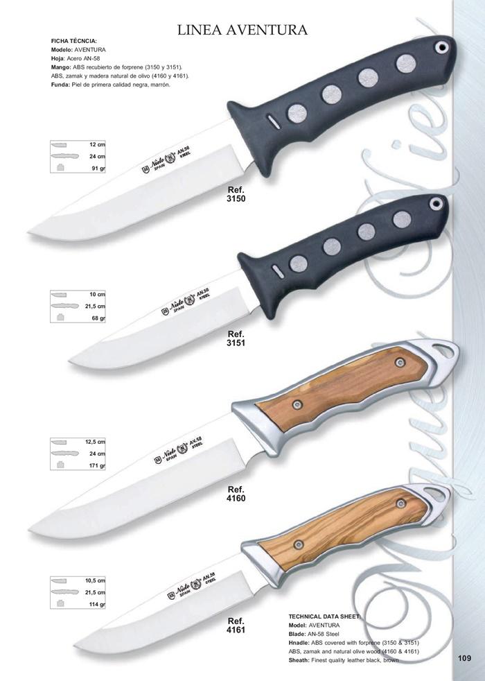 AN58 lâmina de aço. Manipular revestido forprene abs (3150.3151), abs, zamak e madeira natural de oliva. Cobrir couro preto primeiro qualidade ou marrom (4160.4161)
