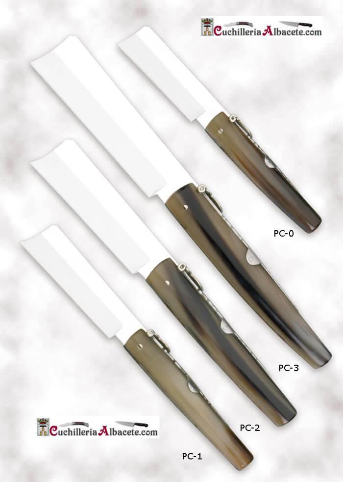 Faca artesanal ponta de corte N1 com cabo em chifre de touro e lâ...