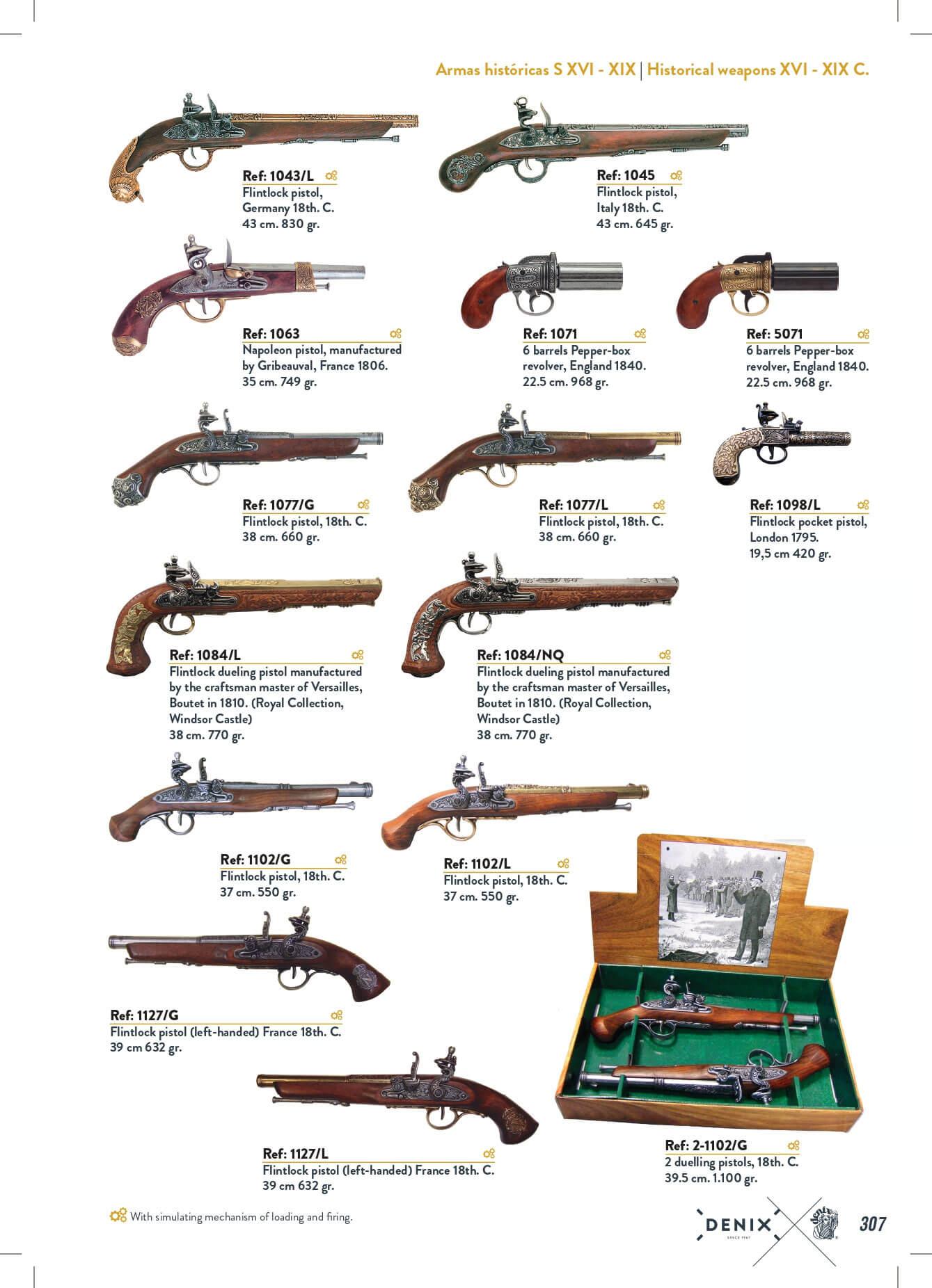 - 1084/L: Pistola de duelo de faísca, projetada pelo mestre artesão de Versalhes, Boutet, em 1810. Coleção real do Castelo de Windsor. 38 cm, 770 gr.