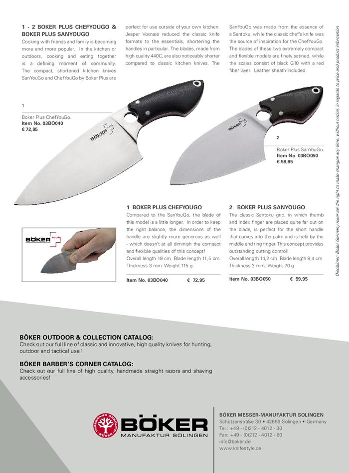 Através da série SnacPac Böker apresenta uma coleção de viagens em que incorpora um curso definido com colher, garfo, faca e até mesmo saleiros e pimenteiros. Esta série também incorpora um curso faca SanYouGo, inspirado pelas facas Santoku e uma faca ChefYouGo inspiraram chefs facas clássico.