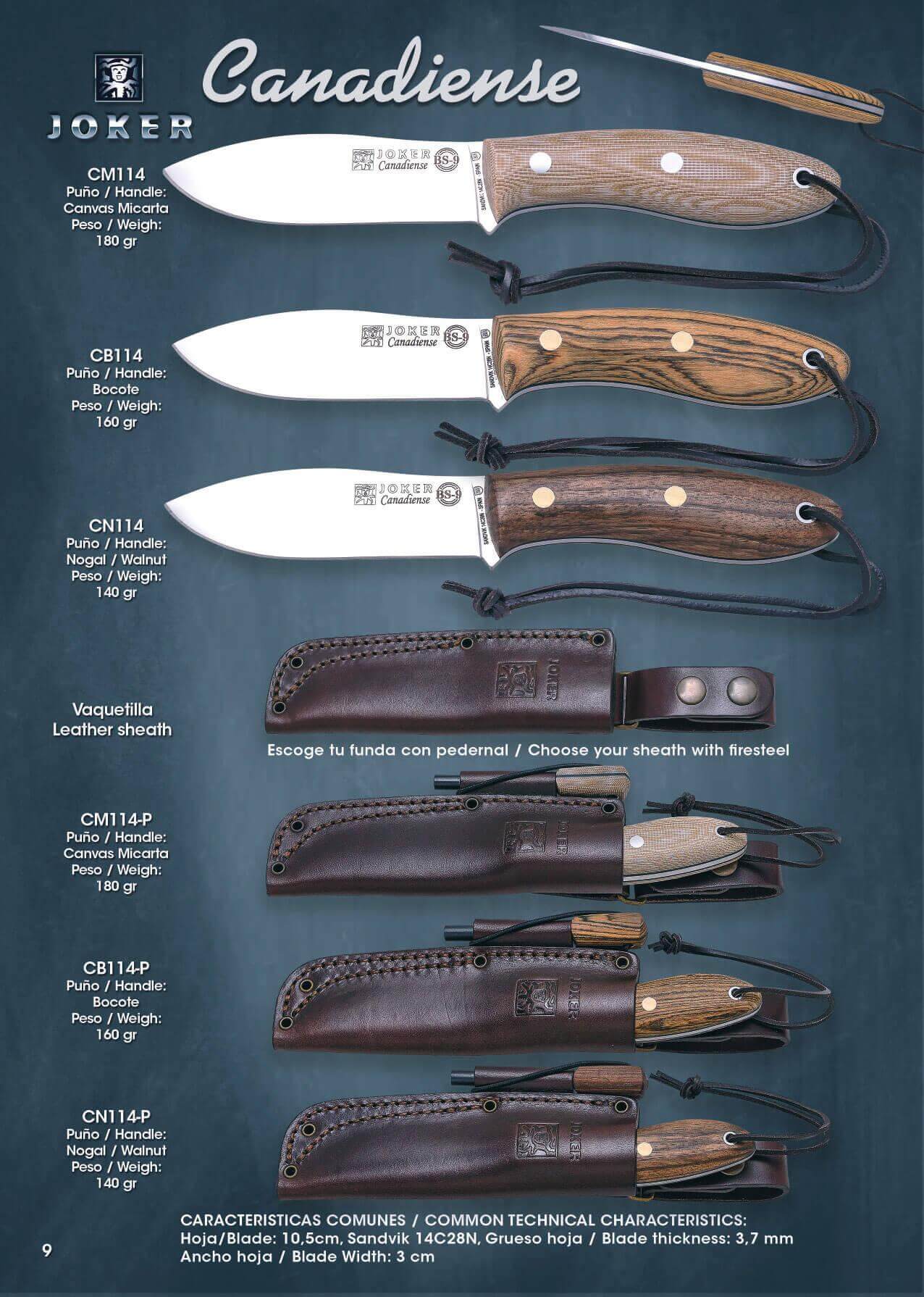 BS9 CANADIAN Joker facas com lâmina de aço Sandvik 14C28N de 10,5 cm e espessura de 3,7 mm.