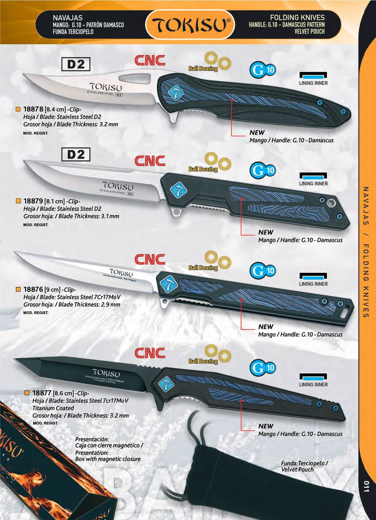 Canivete tático Tokisu com lâmina D2 de 8,4 cm e cabo damasco G10