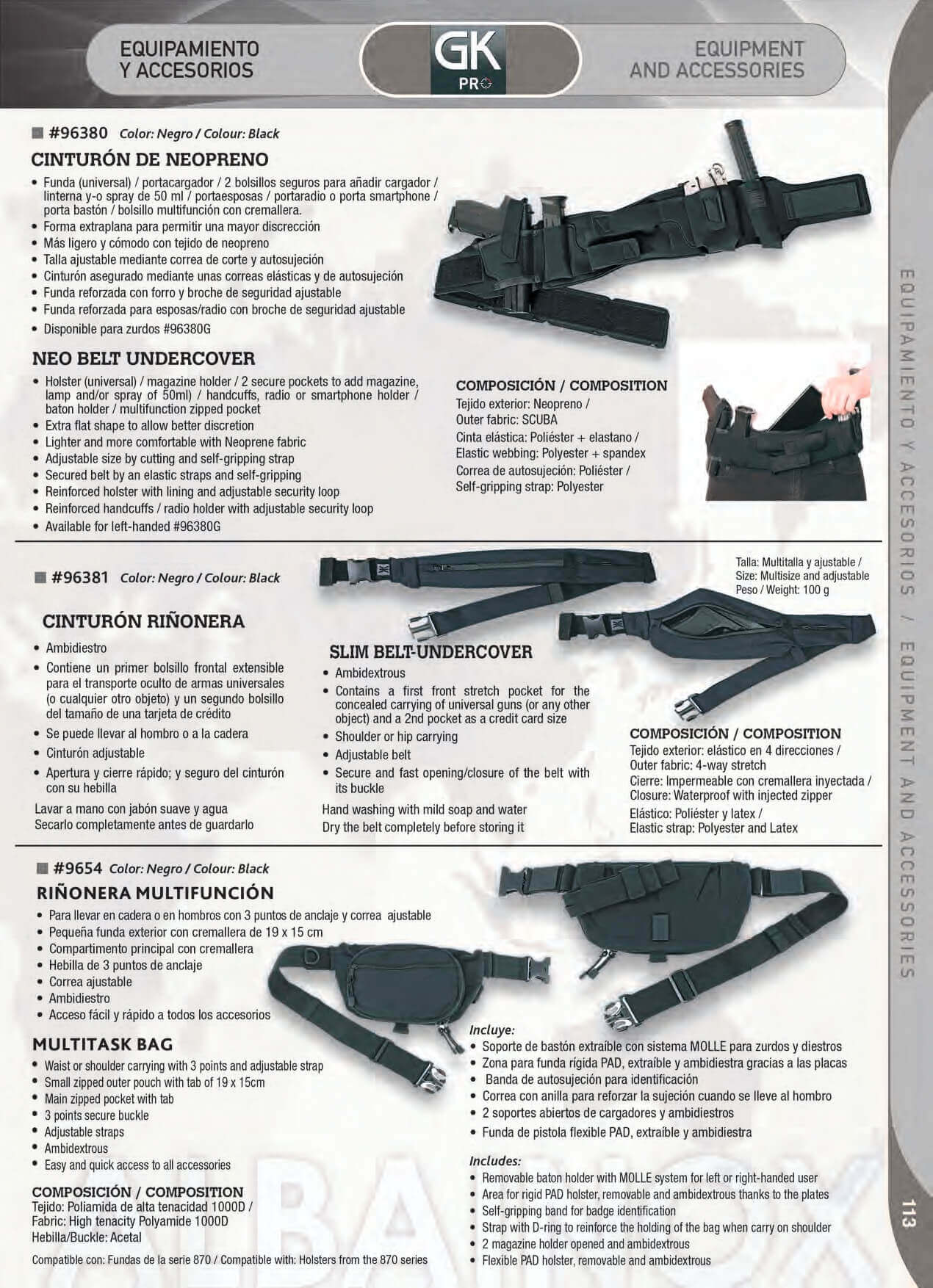 Cinto GK preto para arma automática e acessórios