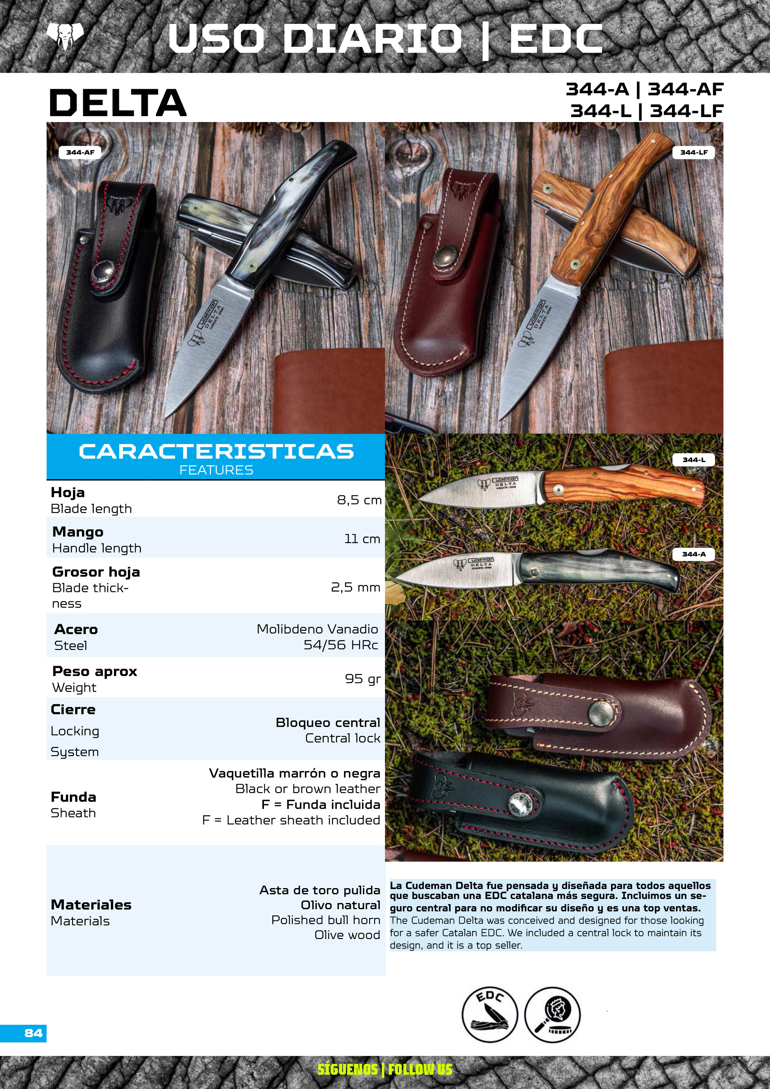 O canivete Cudeman Delta está disponível em chifre de touro, madeira de zimbro natural e madeira de oliveira.