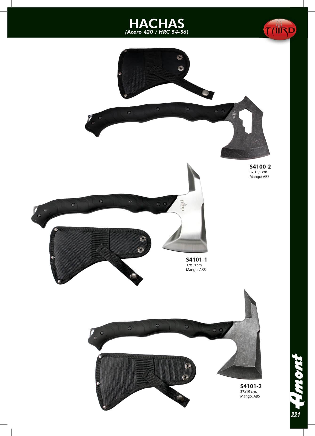 Eixos táticos Lâmina de aço 420. Dureza 54-56 HRC. Alça de ABS <41> S4100-2 Medidas: 37x13,5 cm. S4101 Medição: 37x19 cm.
