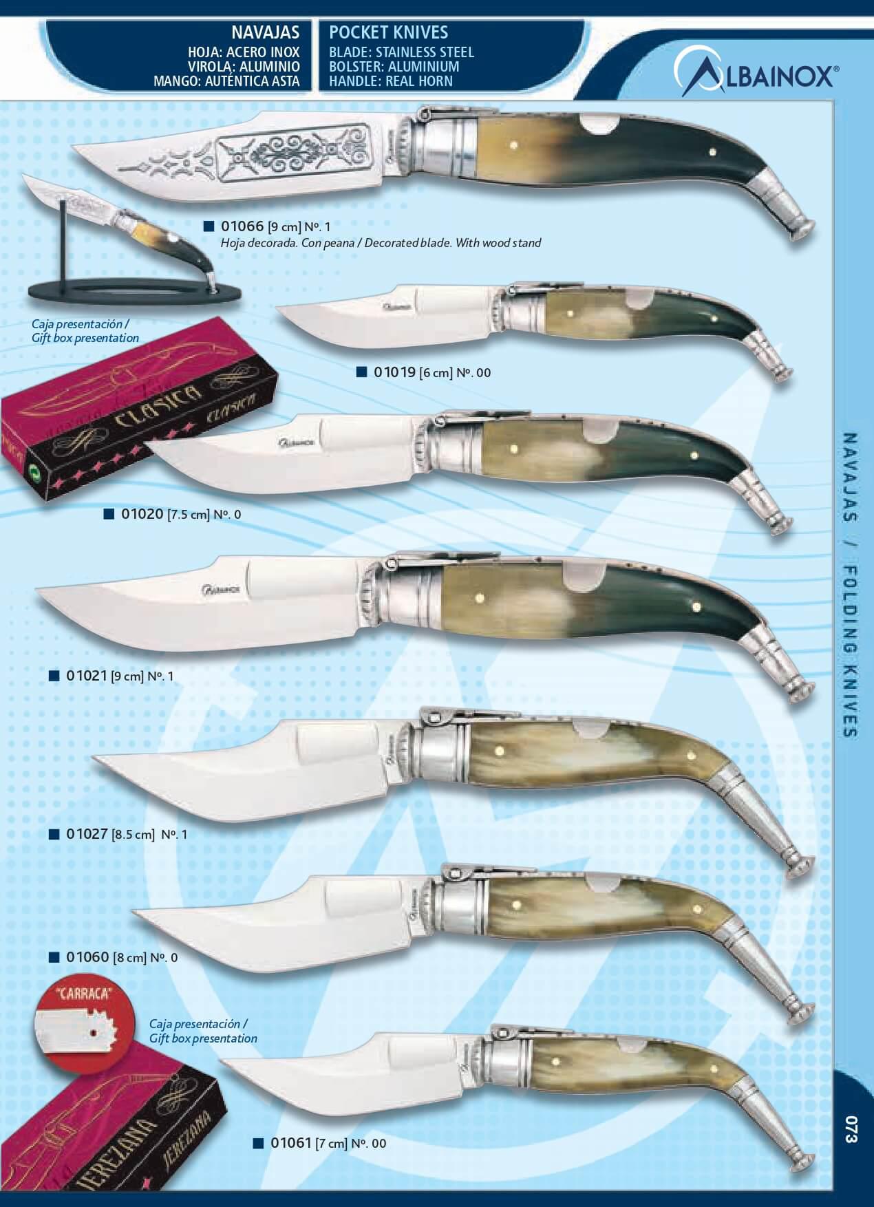 Lâmina de aço inoxidável. Cabo de chifre de touro.
