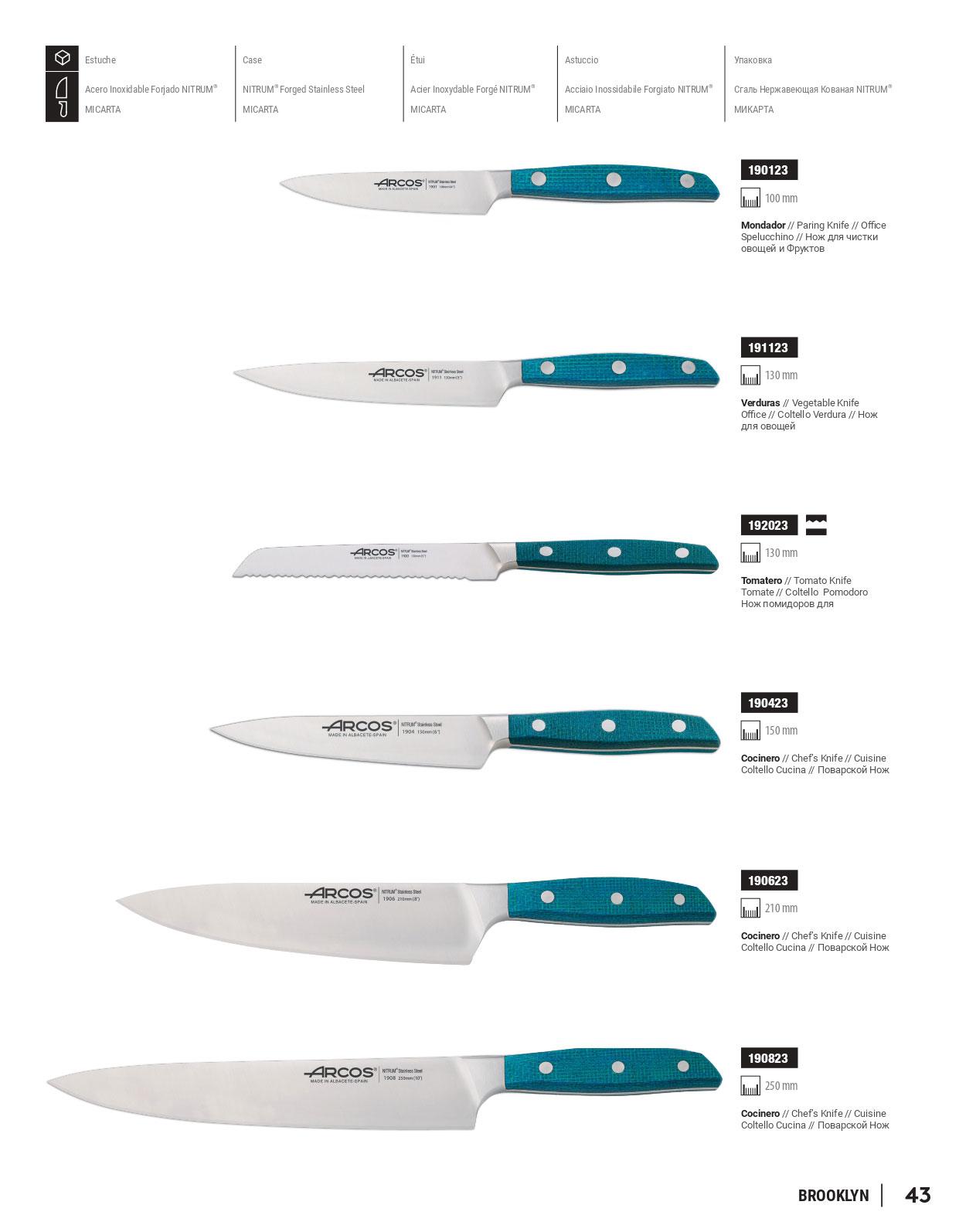 Facas de cozinha com lâmina de aço inoxidável NITRUM com borda de seda especial e alça micarta.