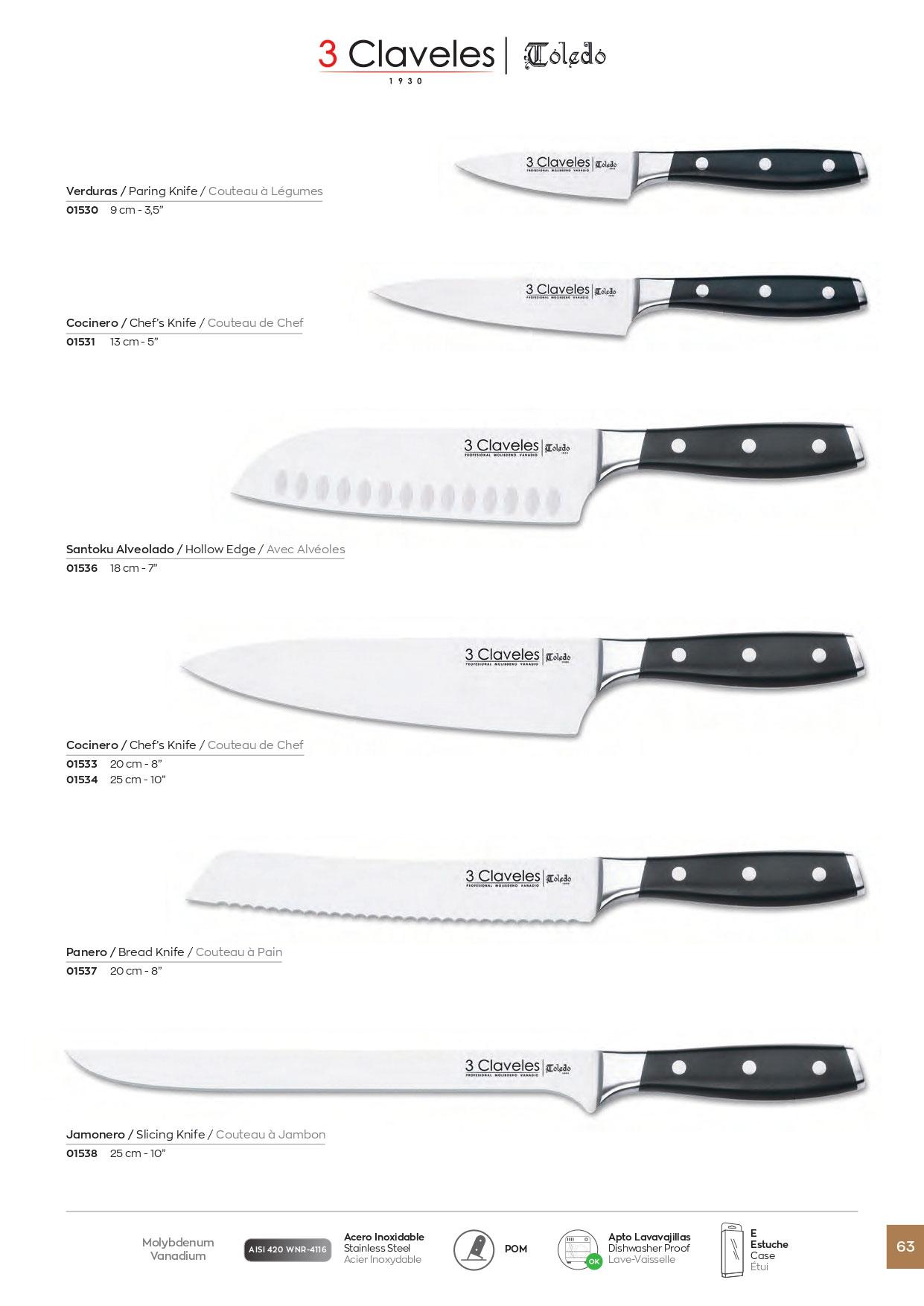 Facas forjadas de aço inoxidável AISI 420 WNR-4116. Cabo POM ergonômico, resistente e confortável. Lâmina de aço inoxidável e cabo POM. Faca de legumes, cozinheira, pão, Santoku.
