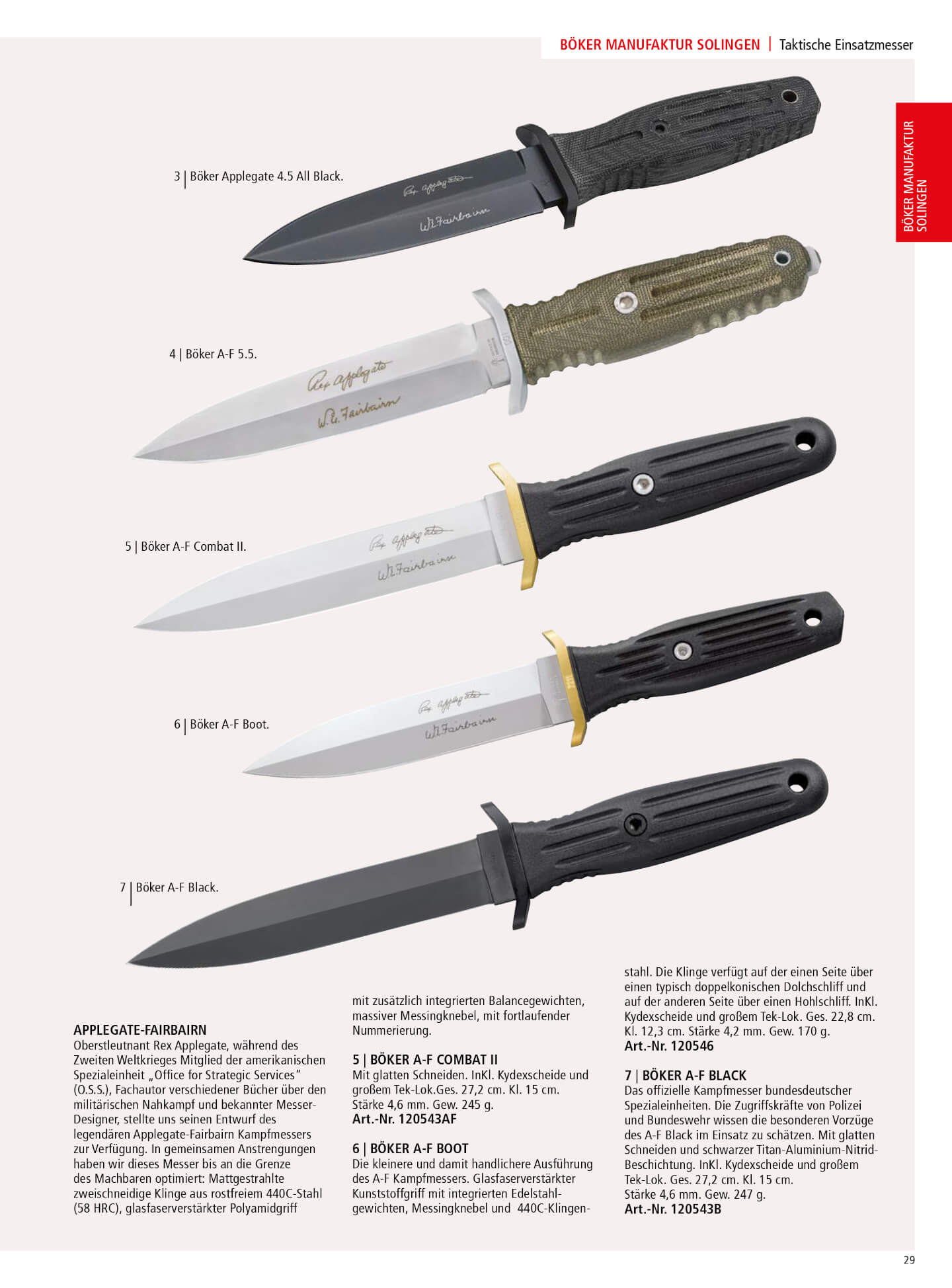 Chapa de aço 440-C (58 ° HRC). Pega de poliamida com integrado equilíbrio contrapesos adicionais. Total de 27,2 centímetros. 15 centímetros Folha. 4,4 milímetros de espessura. Peso 245 g.