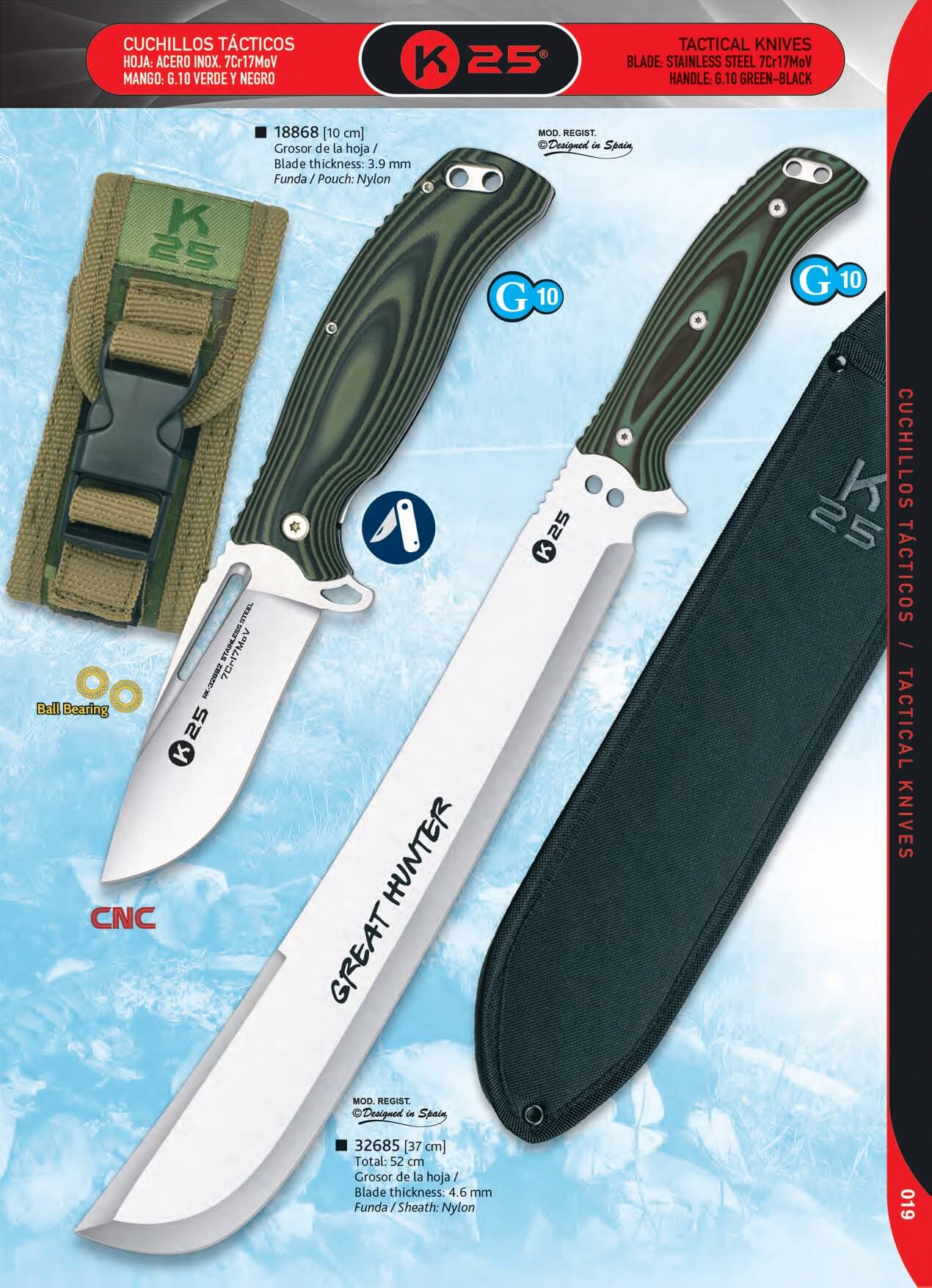 K25 Facão tático Grande caçador com lâmina de 37 cm e cabo G10 ve...