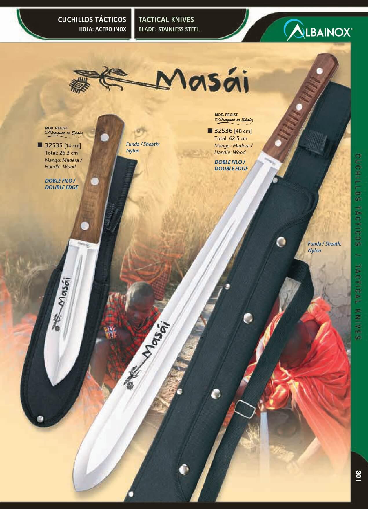 Faca de dois gumes Albainox Masai com lâmina de 14 cm