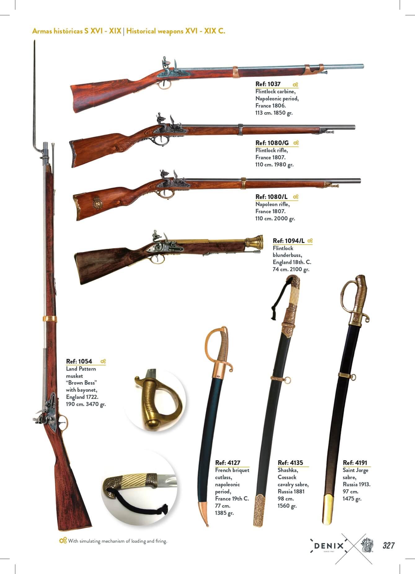 - 1054: Mosquetão "Brown Bess", Inglaterra 1722. Peso: 3470 gr. Comprimento total: 190 cm.