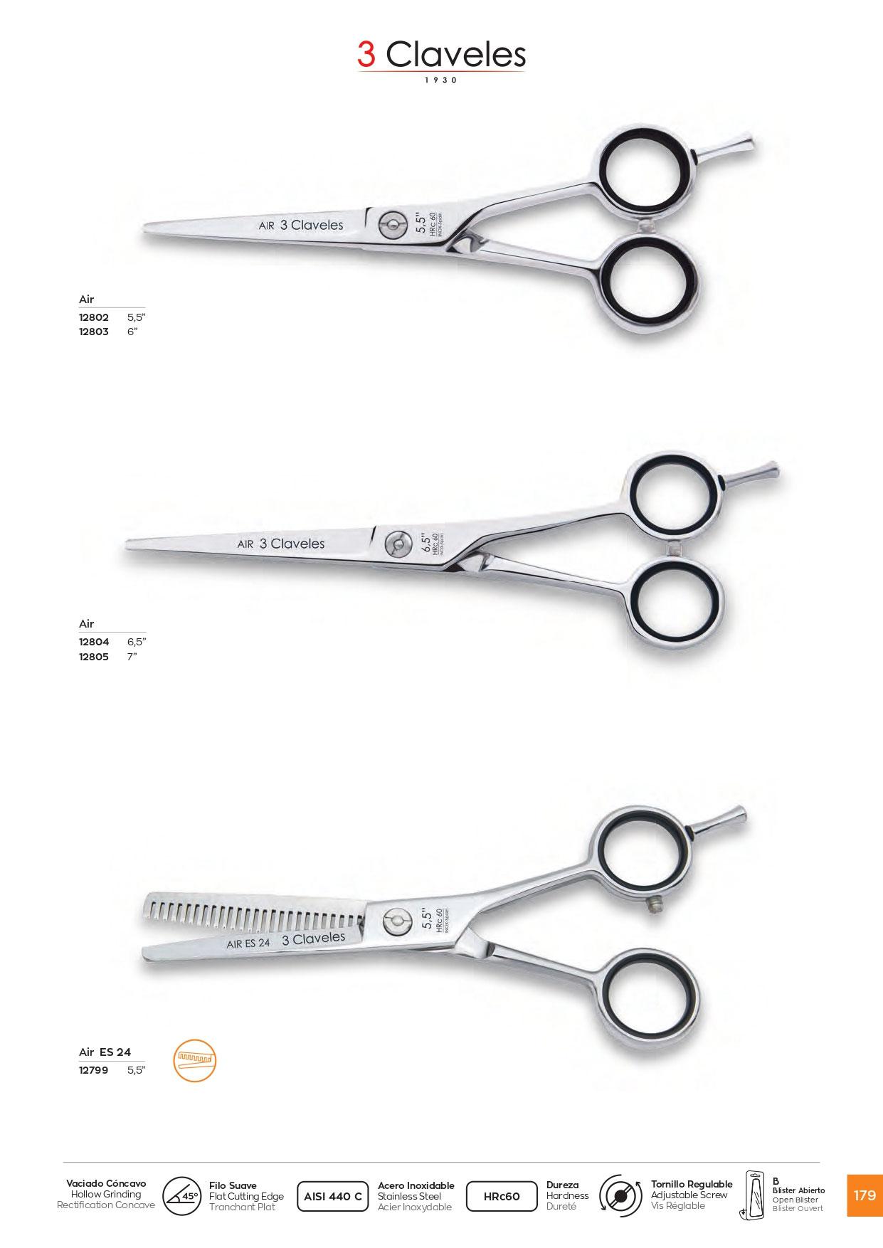 Tesoura de cabeleireiro Air 6,5" em aço inoxidável 3 Claveles