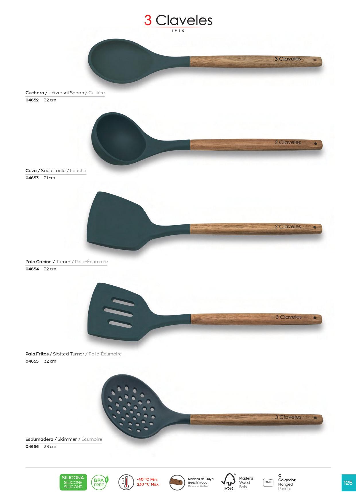 Escumadeira em silicone e madeira de faia, livre de BPA, 3 Clavel...