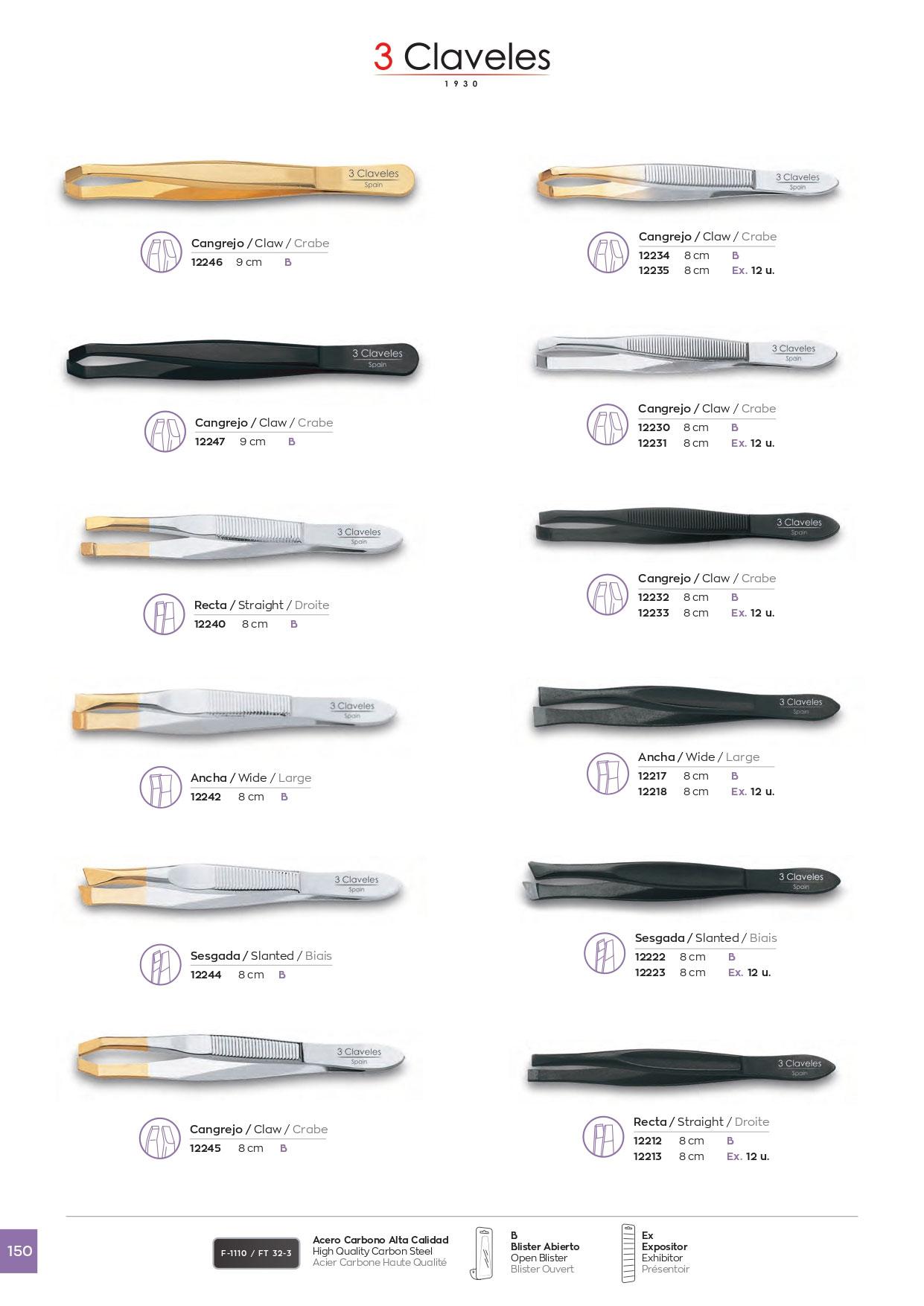 Pinzas de depilar de acero carbono acabado niquelado brillo 3Clav...
