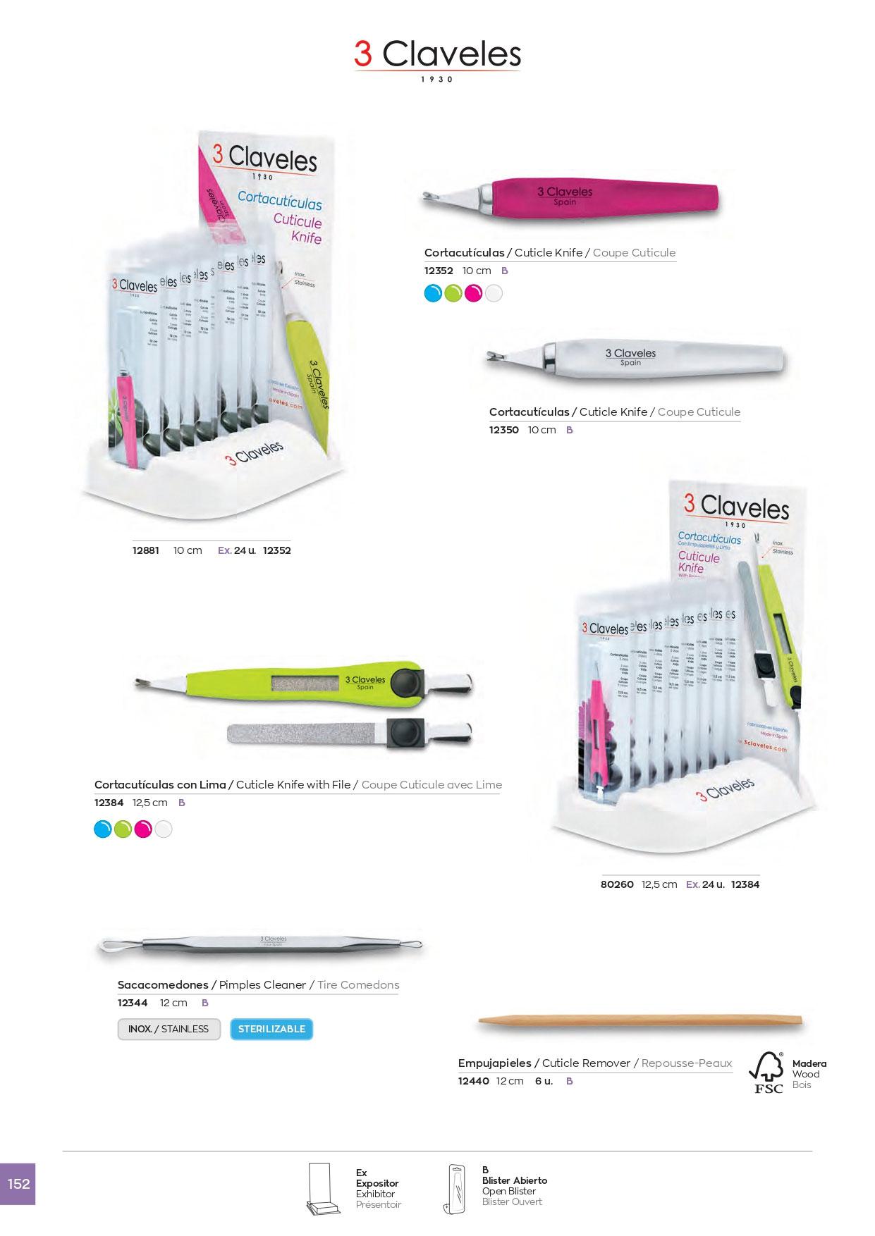 Corta Cutículas con lima de colores Expositor 24 unidades 3 Clave...