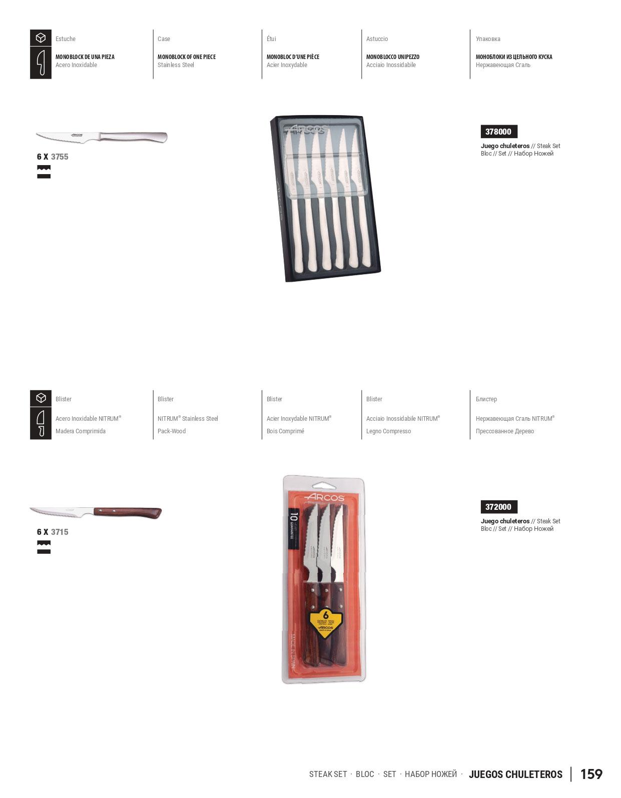 Conjunto de 6 cuchillos chuleteros Arcos monoblock acero inoxidab...