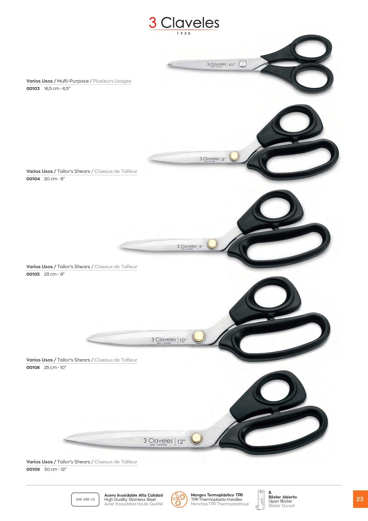 21-103 / 21-104 / 21-105 / 21-108 / 21-109 Tijeras profesionales varios usos.