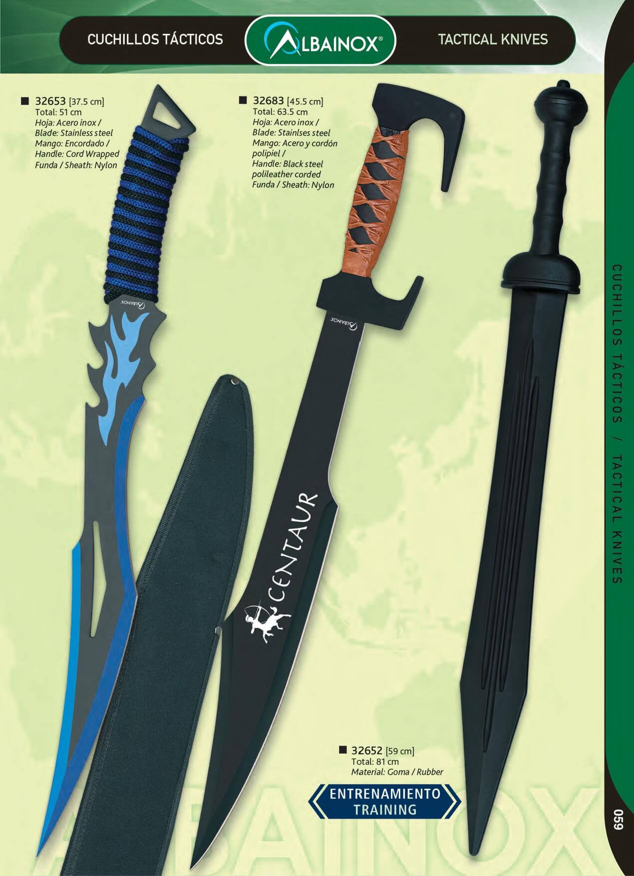 Machete táctico con hoja negra y azul de 37.5 cm y mango encordad...