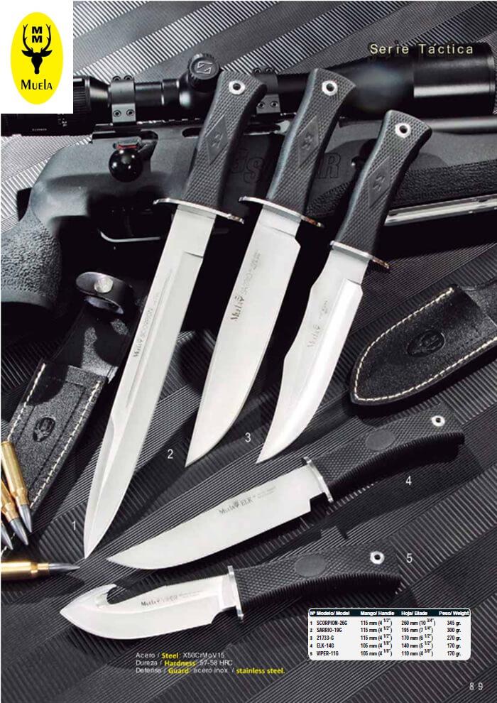 Cuchillo táctico Muela ELK-14G con mango de goma negra y hoja de ...