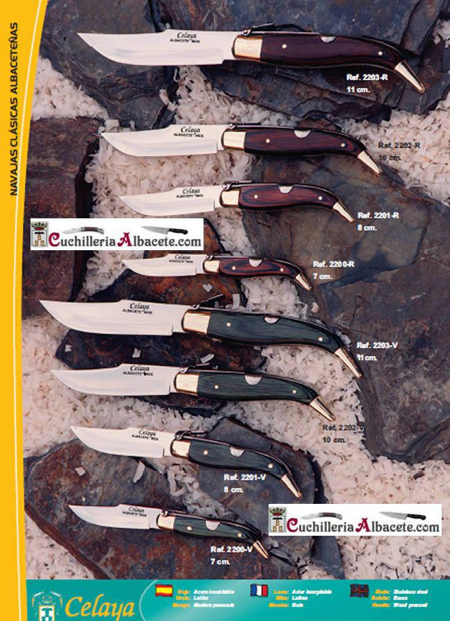 2203-R 2202-R, 2201-R, 2200-R Navaja clásica albaceteña con hoja de acero inoxidable y mango de madera prensada roja.