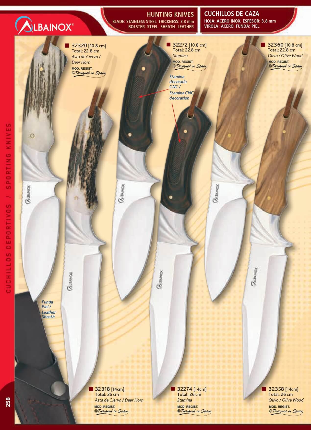 Cuchillo caza Albainox con mango de stamina CNC, funda de piel y ...