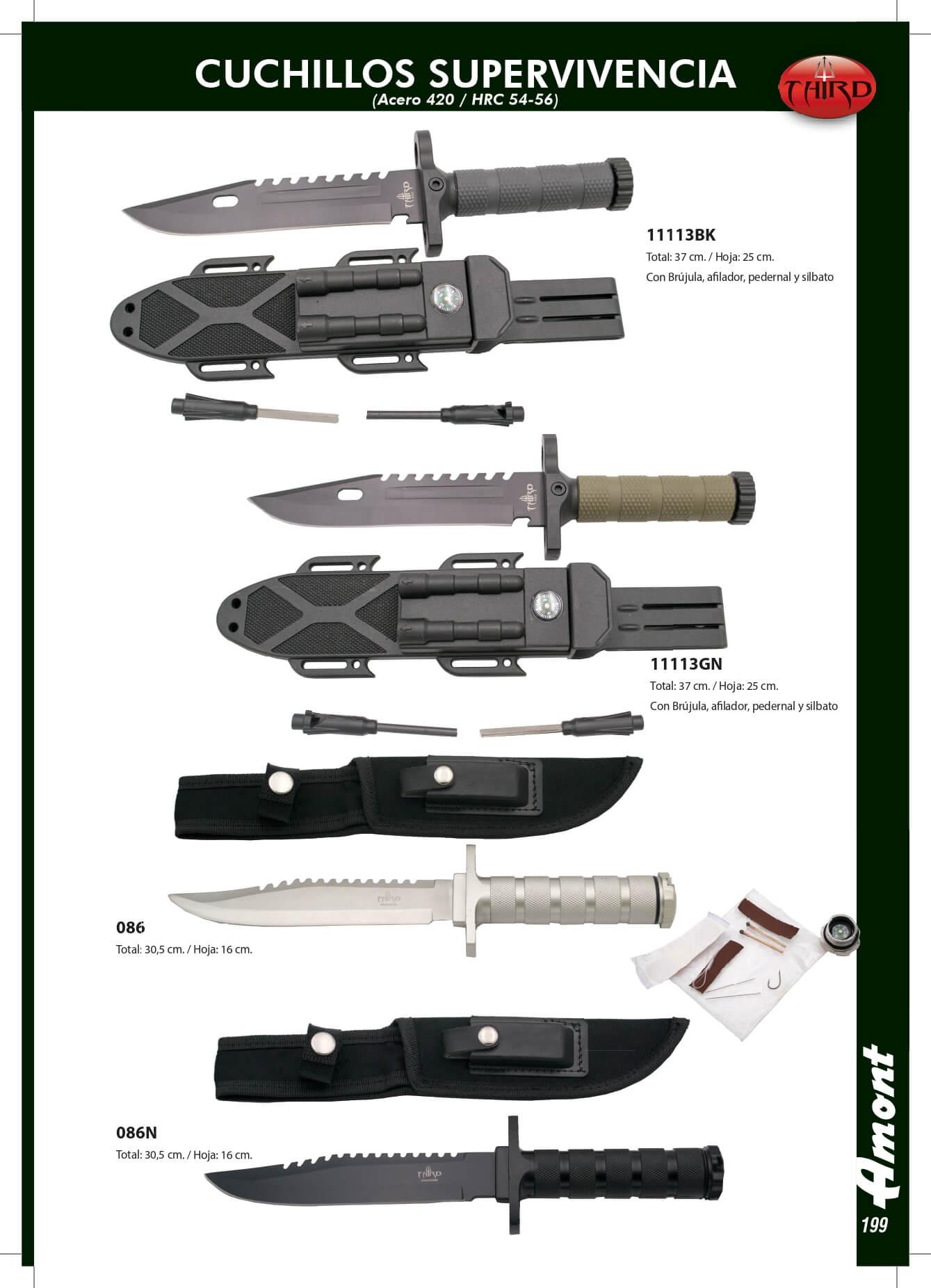 Cuchillos de supervivencia. Hoja: acero 420. HRC 54-56. 086 y 086N Longitud de hoja: 16 cm. Longitud total: 30.5 cm.