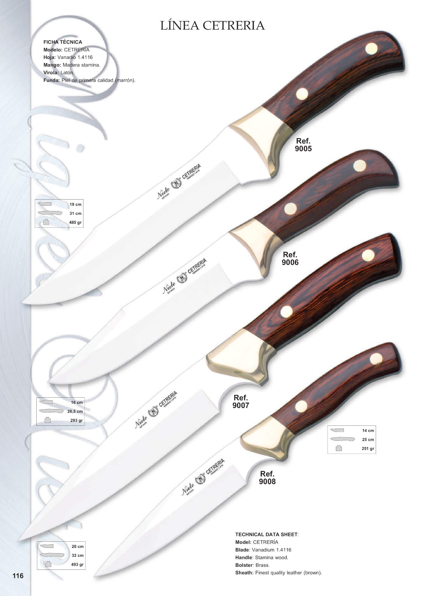 Longitud de hoja: 19 cm. Longitud total: 31 cm. Peso: 485 gr.