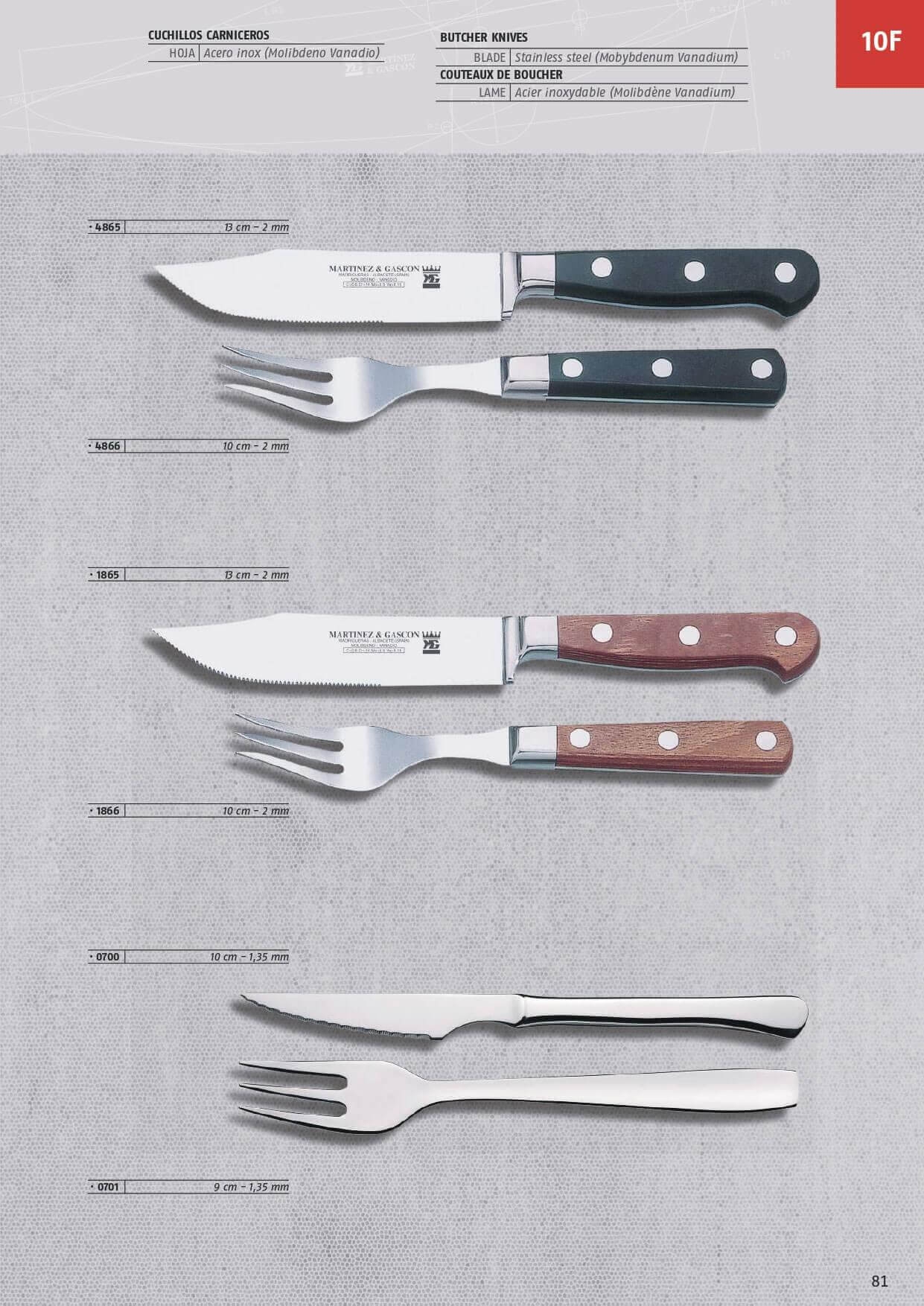 Cubiertos de mesa. Cuchillos chuleteros, tenedores para carne.