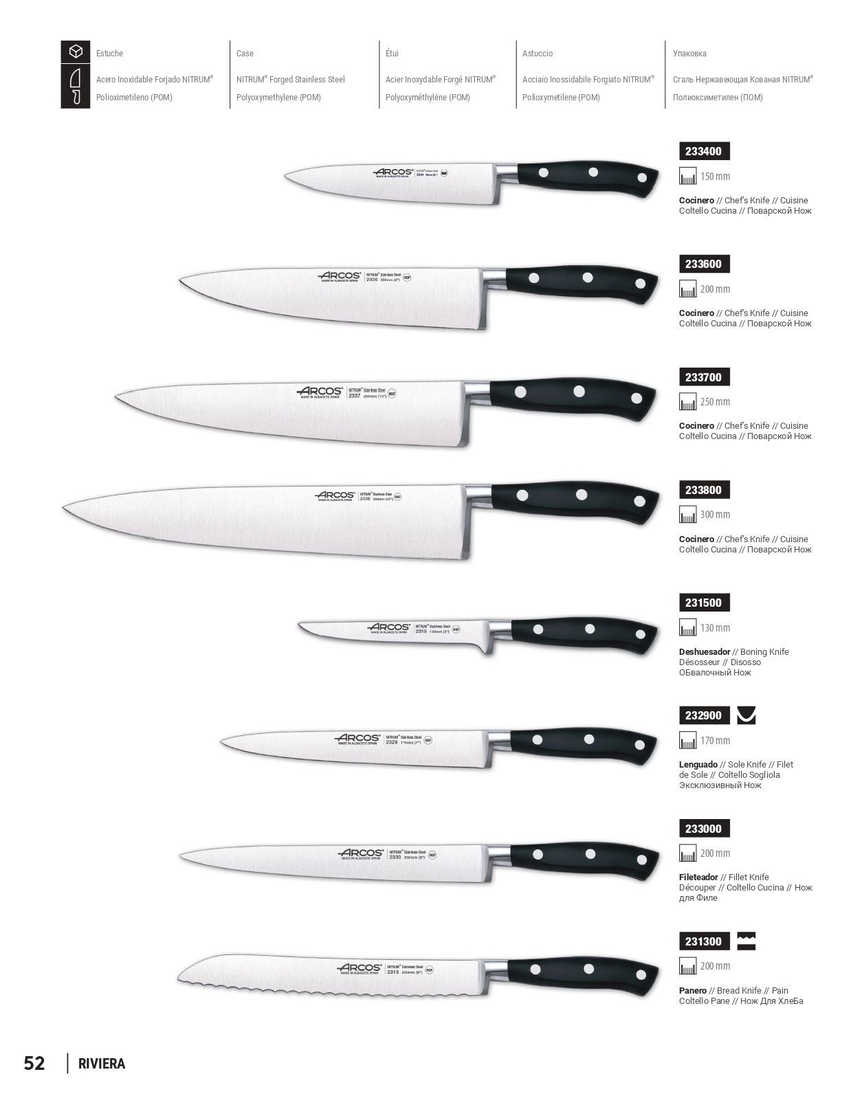 Cuchillos de cocina. Hoja de acero inoxidable forjado NITRUM. Mango POM. Santoku y cocinero de varios tamaños. 140 mm. 150 mm. 180 mm. 200 mm. 250 mm. 300 mm. Modelo RIVIERA.
