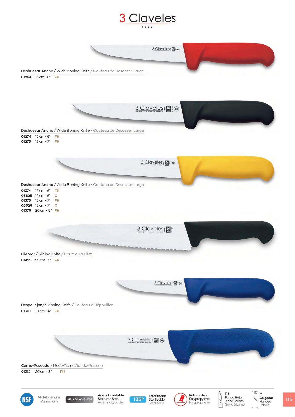 Cuchillos Profesionales de Carnicero. Hoja de acero Inoxidable. Mango de polipropileno.
