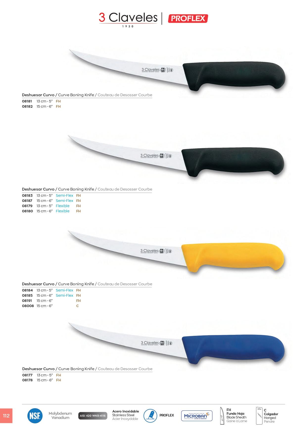 Cuchillos Profesionales Carnicero de Deshuesar. Acero Inoxidable mango polipropileno