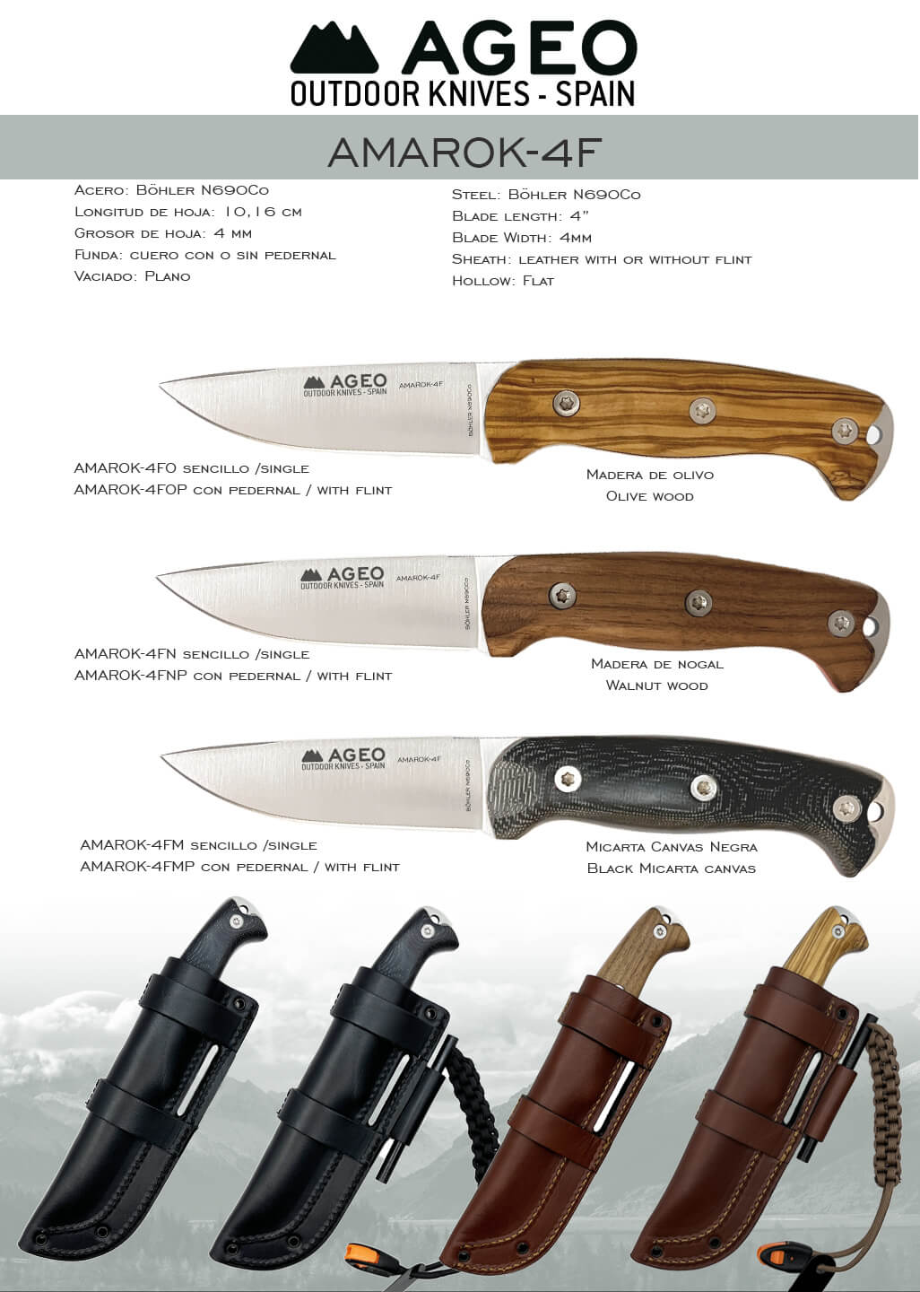 Los diferentes acabados de los mangos ofrecen al usuario final una amplia posibilidad de eleccion, el cual puede elegir entre micarta canvas negra o maderas nobles de nogal o olivo.
