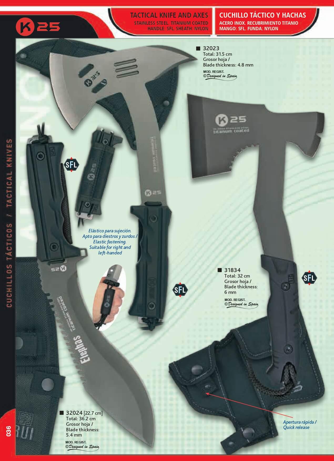 Hacha K25 de color negro con hoja de 4,8 mm de grosor y longitud ...