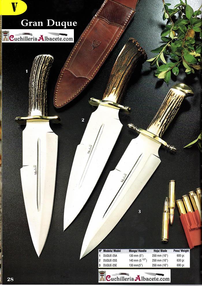 El cuchillo Muela Duque se presenta con funda de cuero marrón de lata calidad y certificado de autenticidad.