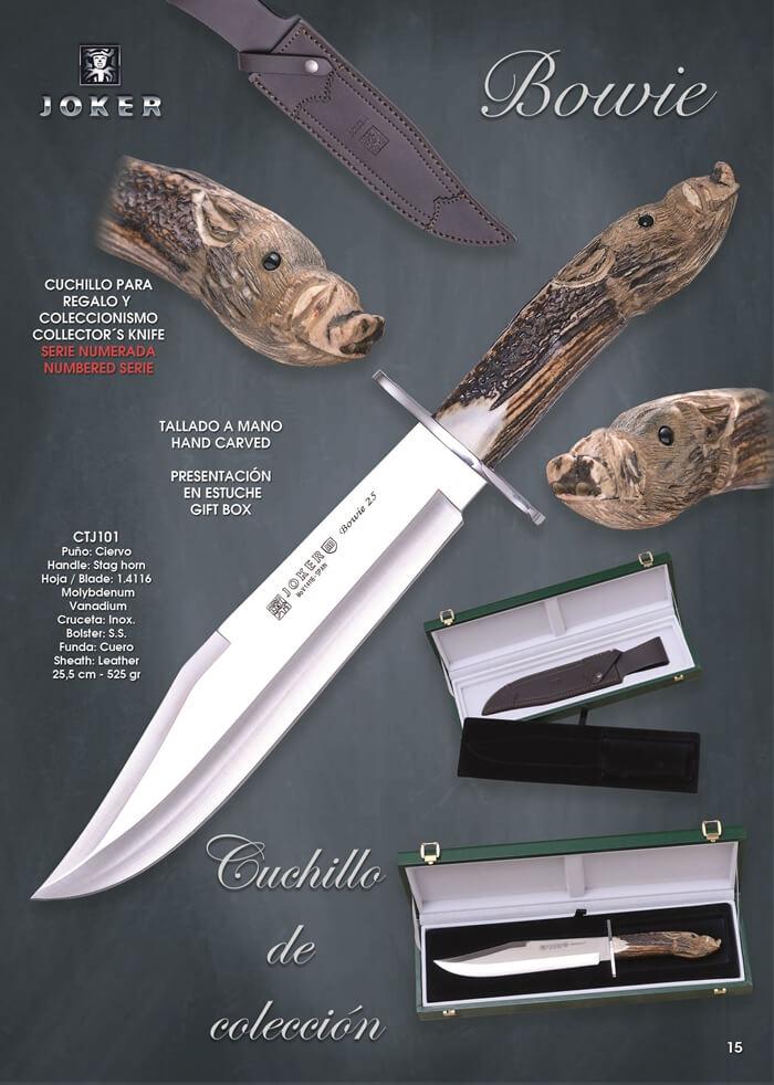 Cuchillo Bowie para regalo y coleccionismo tallado a mano.Presentado en estuche.