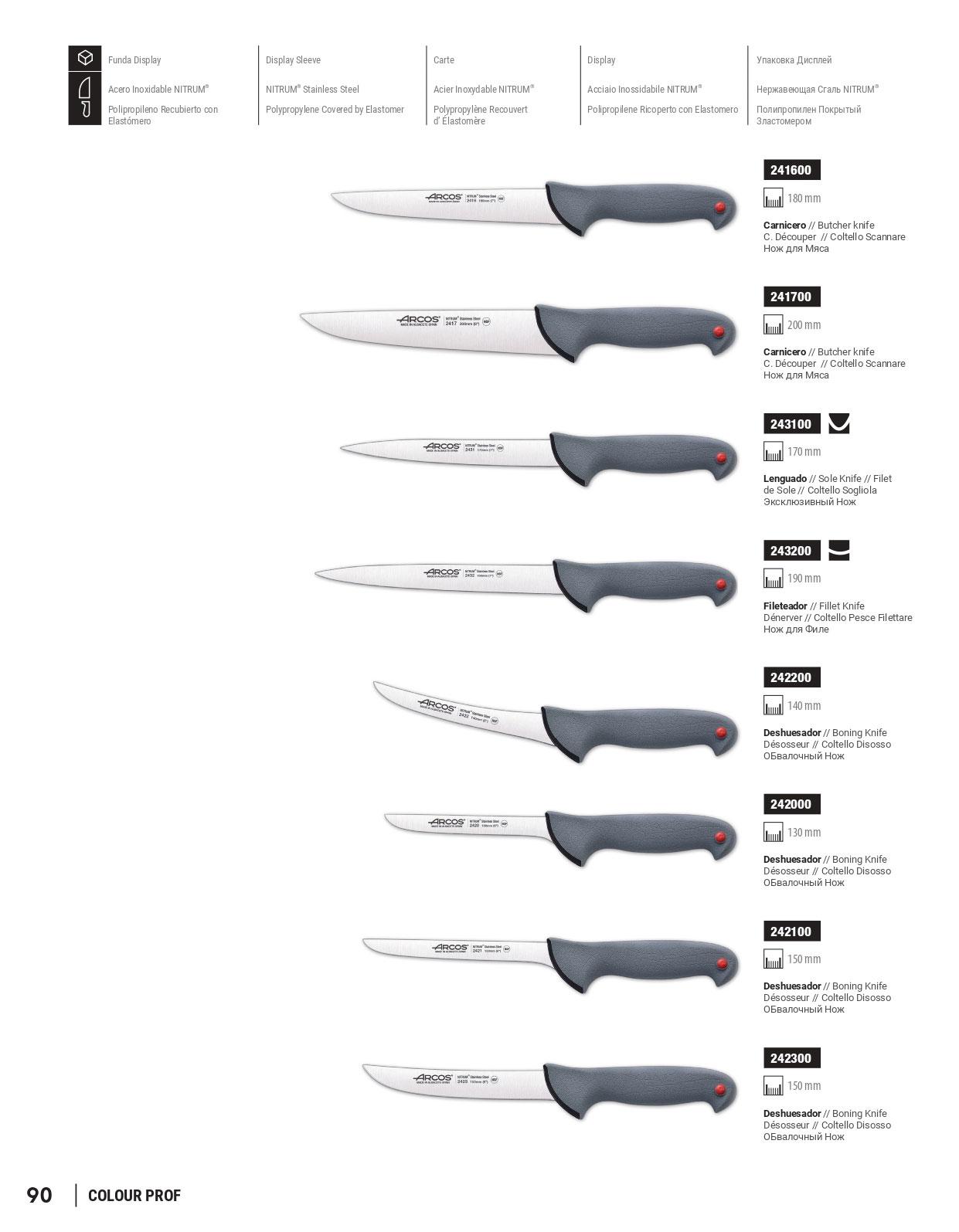 Cuchillos profesionales de carnicero. Hoja de acero inoxidable NITRUM, mango polipropileno recubierto con elastomero.