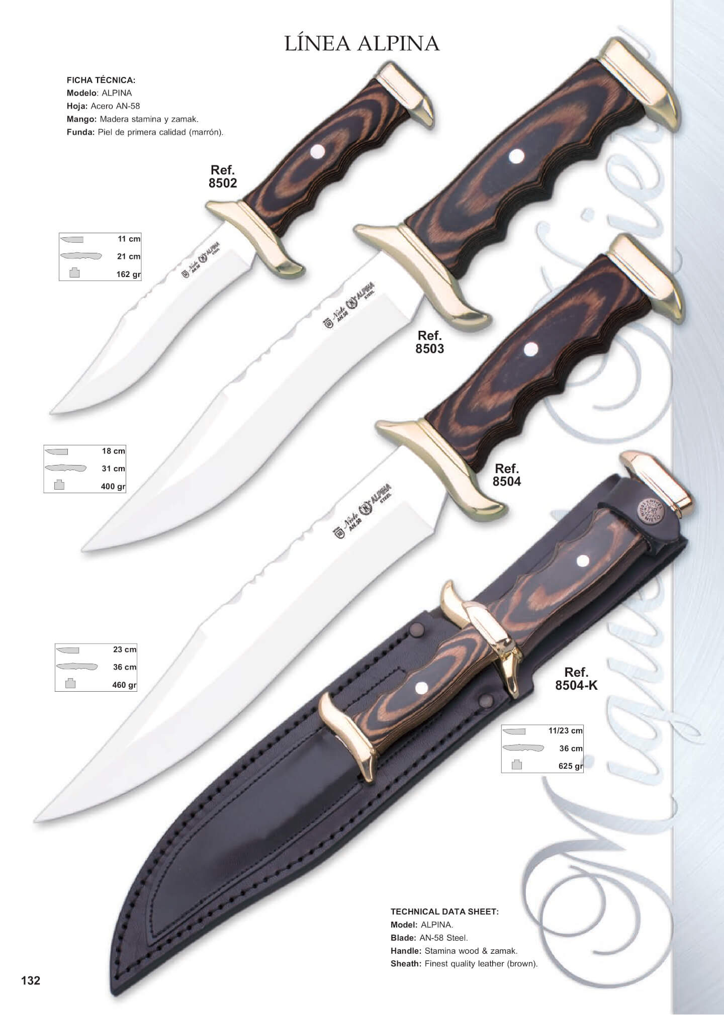 8504 Longitud de Hoja: 23 cm. Longitud total: 36 cm. Peso: 460 gr.