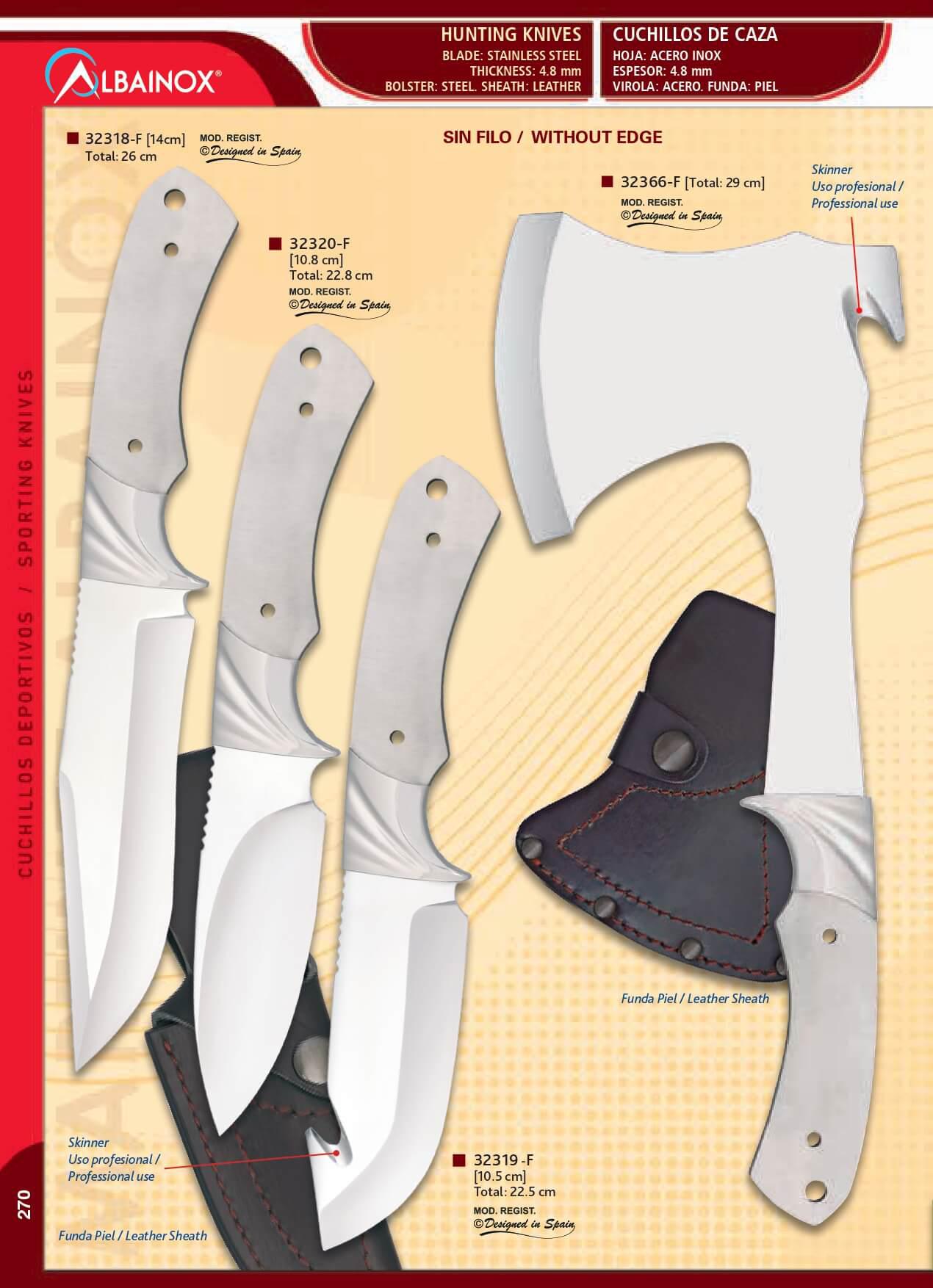 CUCHILLOs DE CAZA Y HACHA SIN FILO