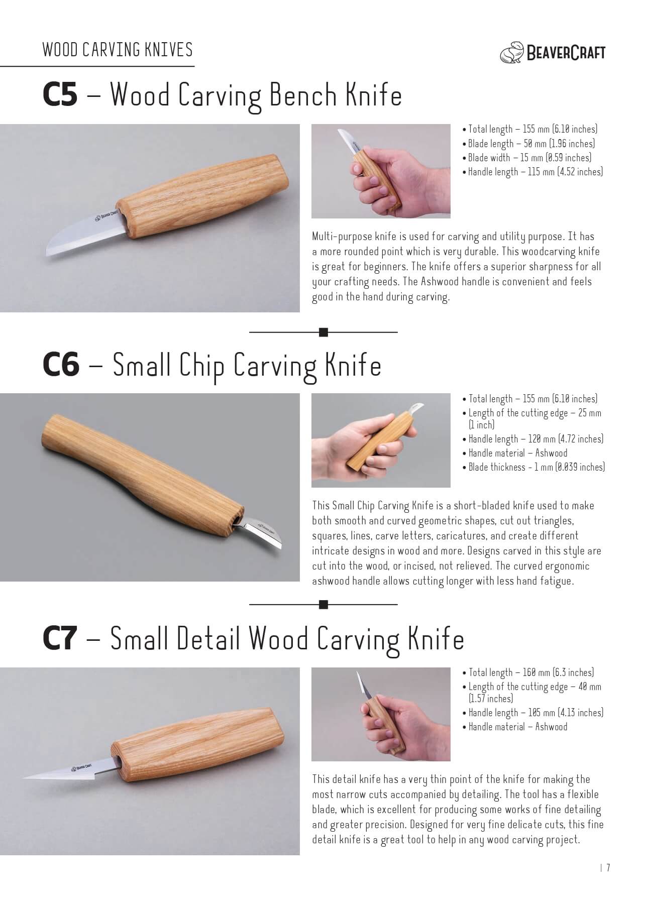 Cuchillos de tallar con hojas de acero carbono y mangos de madera de fresno. Estos cuchillos son idóneos para cualquier actividad de tallado, o cualquier técnica, para detalles pequeños por ejemplo. También son útiles para principiantes o para albañiles más experimentados. Tienen hojas fuertes que te permitirán hacer cortes más grandes sin esfuerzo alguno. Cuchillos perfectos para tus esculturas de madera.