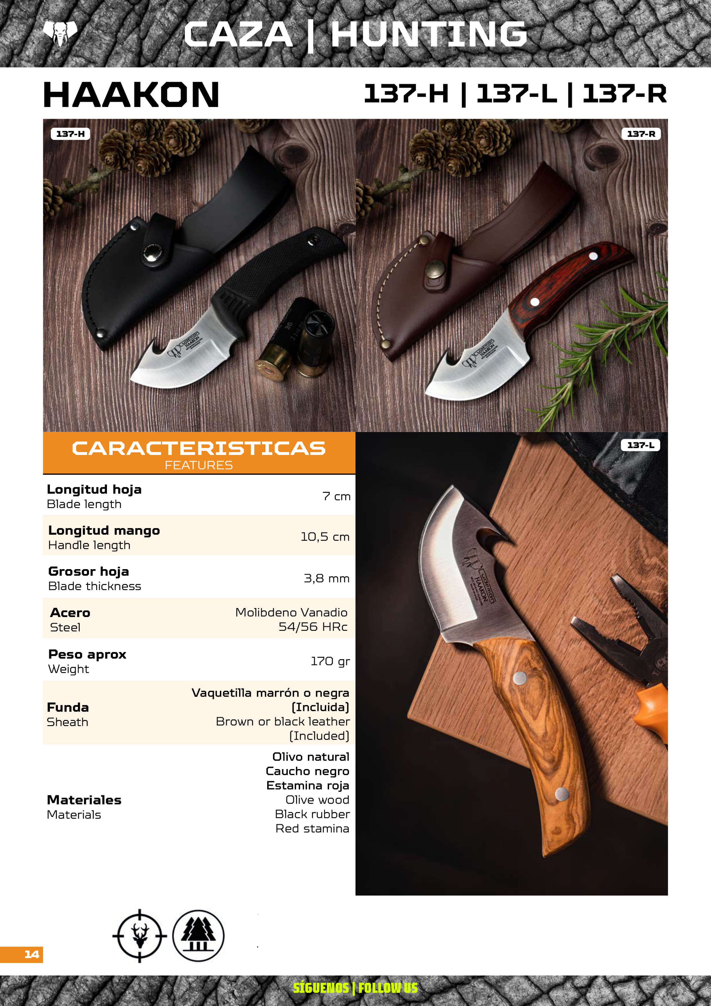 Cuchillos desolladores cudeman con mango de caucho antideslizante Hoja de Molibdeno Vanadio, con un espesor de 4 mm y funda de cuero negro.