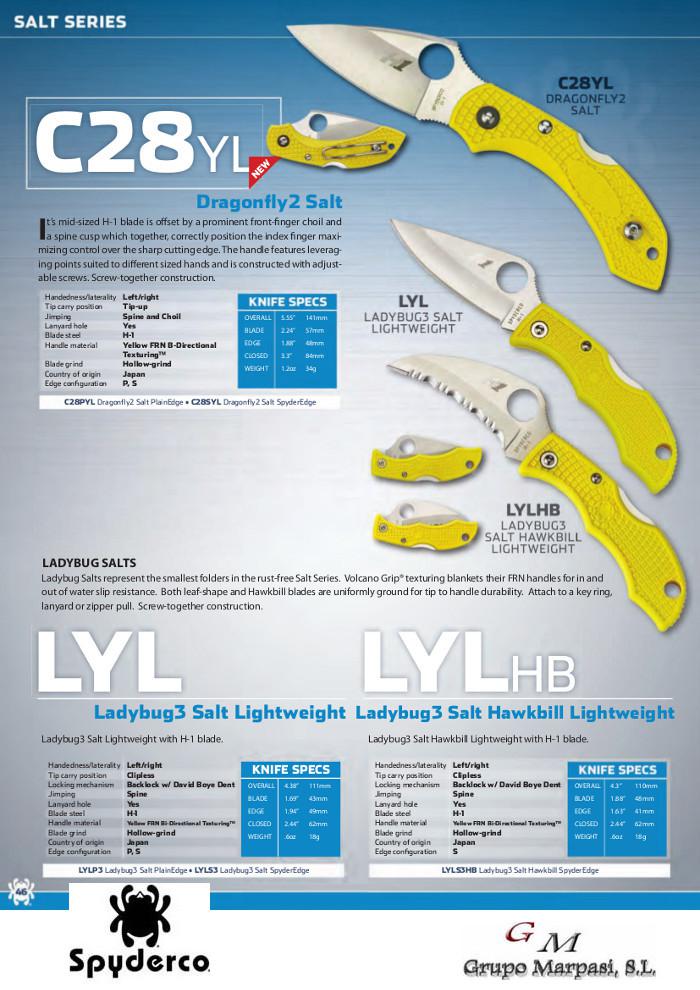 Cuchillos deportivos - navajas sport Dragonfly 2 Salt para utilizar en entornos de agua dulce y salada. C28PYL - Dragonfly 2 Salt PlainEdge. C28SYL - Dragonfly 2 Salt SpyderEdge.