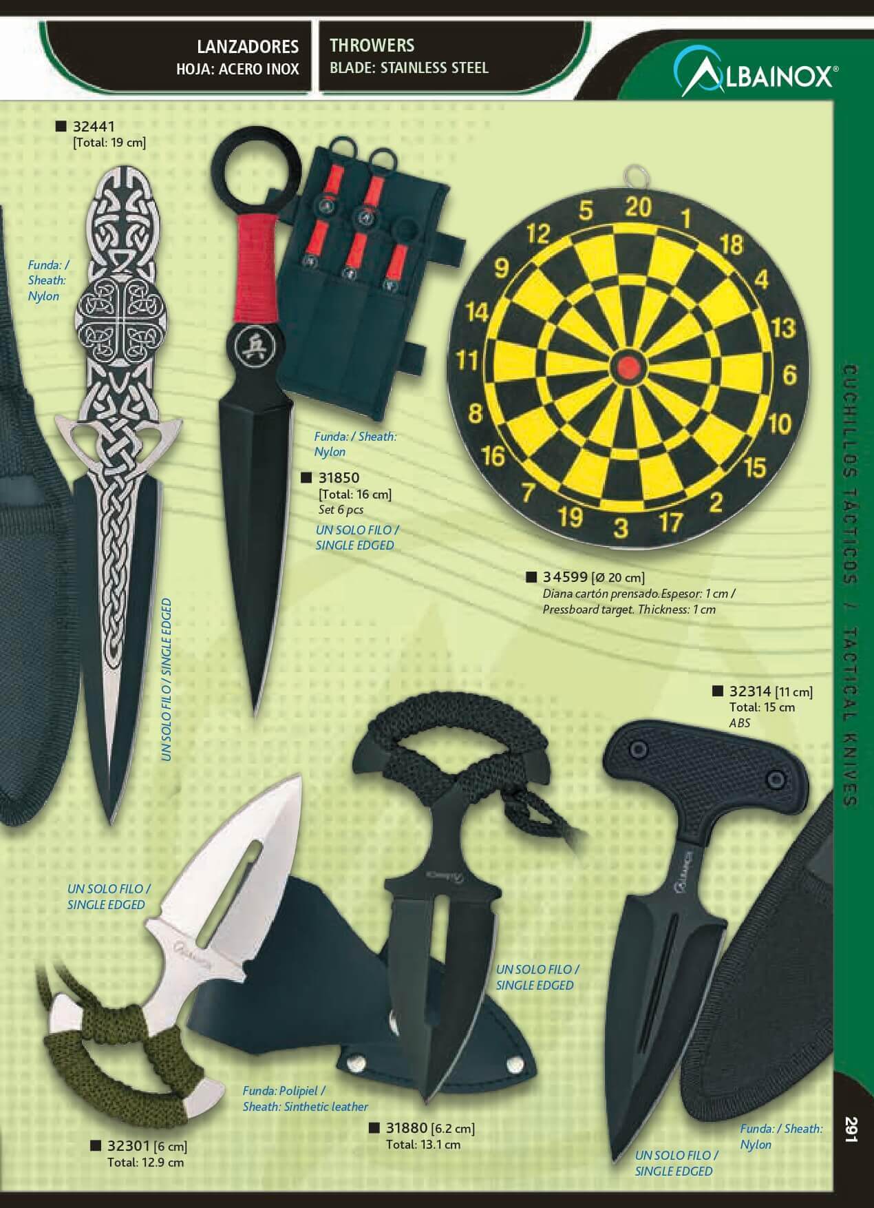 Set de seis cuchillos lanzadores de Albainox con longitud total d...