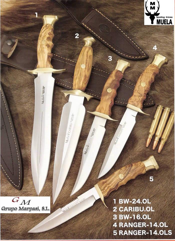 Cuchillo de caza Muela Bowie con mango de madera de olivo y hoja ...
